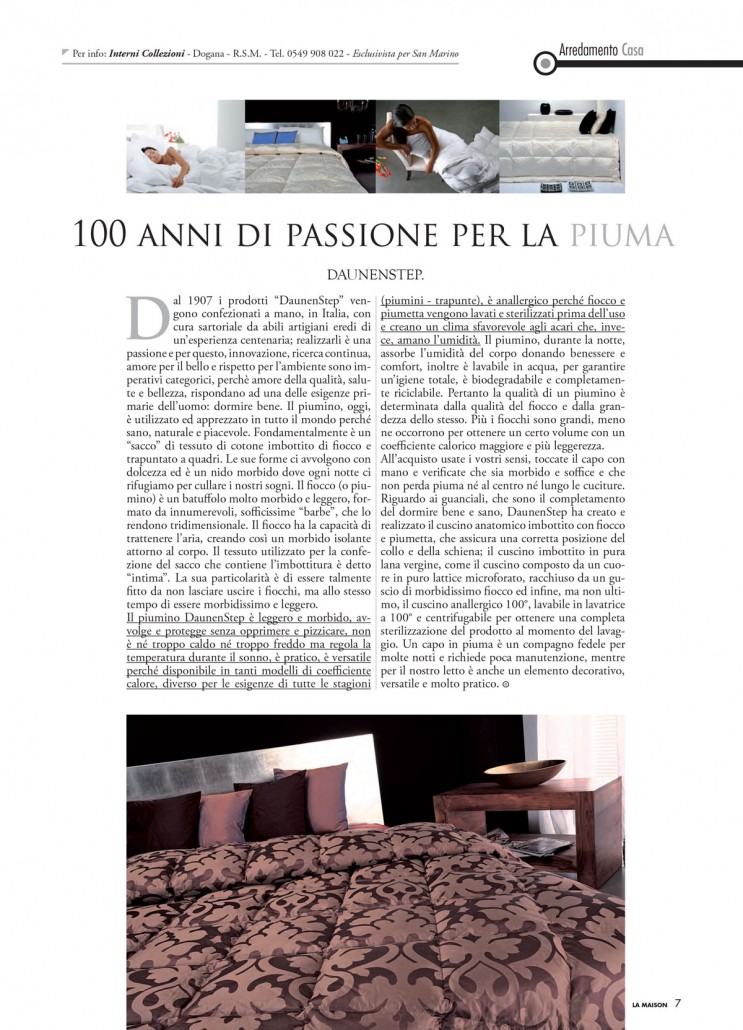 Dal 1907 i prodotti “DaunenStep” vengono confezionati a mano, in Italia, con cura sartoriale da abili artigiani eredi di un’esperienza ...