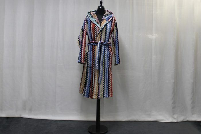Viene realizzato in spugna di puro cotone effetto valour tinto in filo.