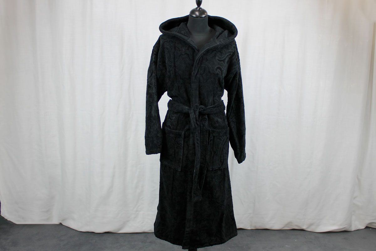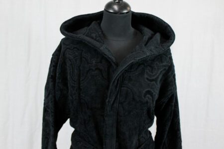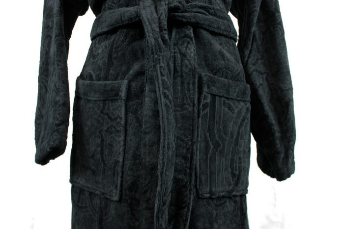 Accappatoio velour realizzato in puro cotone tinto in pezza.