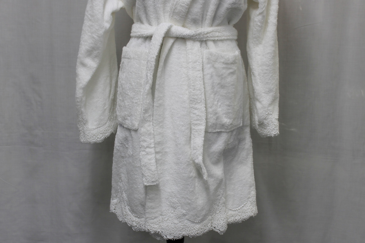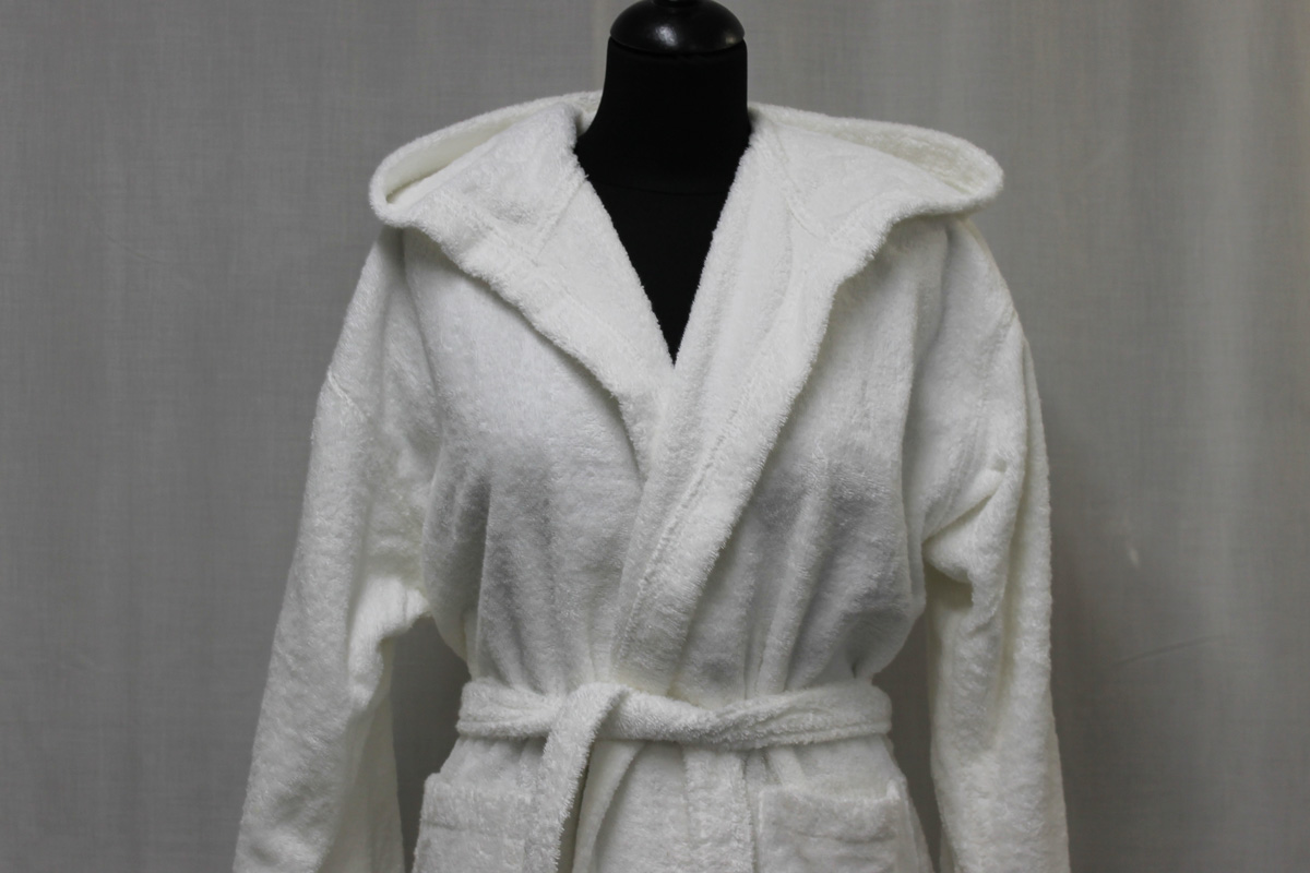 In questo caso abbiamo un accappatoio corto con cappuccio.