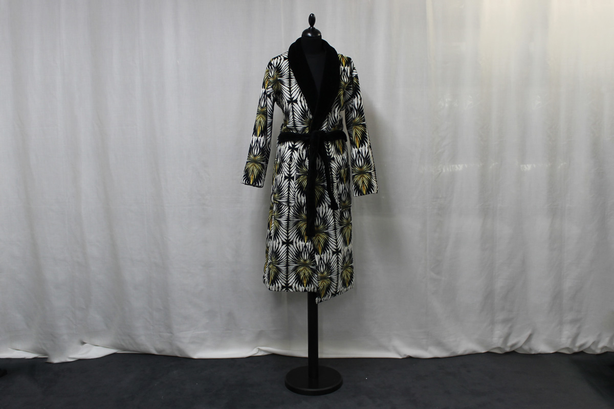 Un fantastico accappatoio con collo a scialle proposto da Roberto Cavalli.