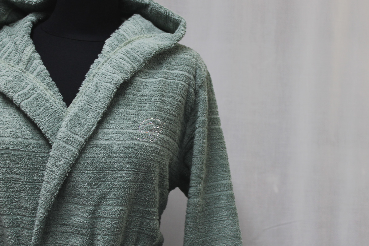 Viene realizzata in puro cotone idrofilo con lavorazione jacquard.
