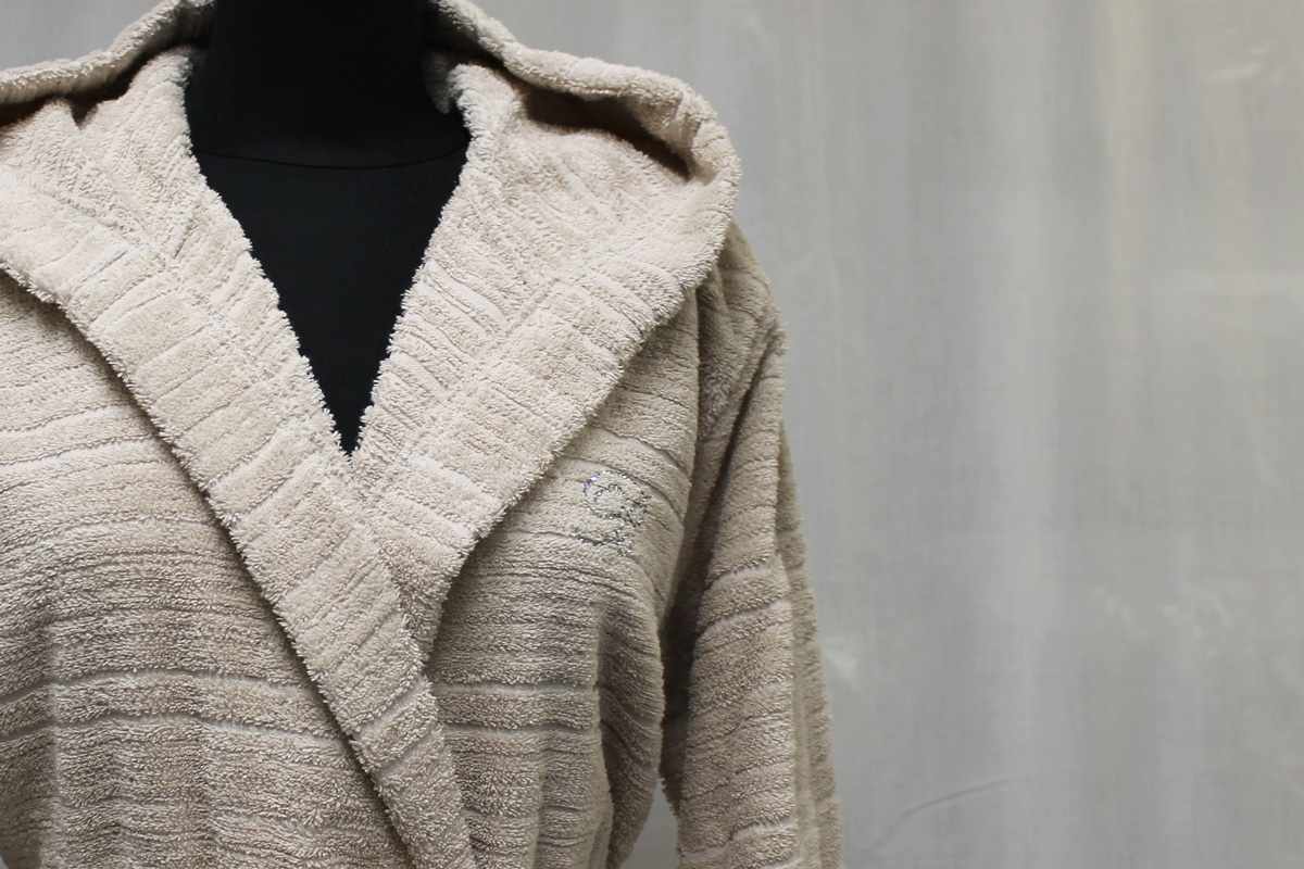 Viene realizzata in puro cotone idrofilo con lavorazione jacquard.