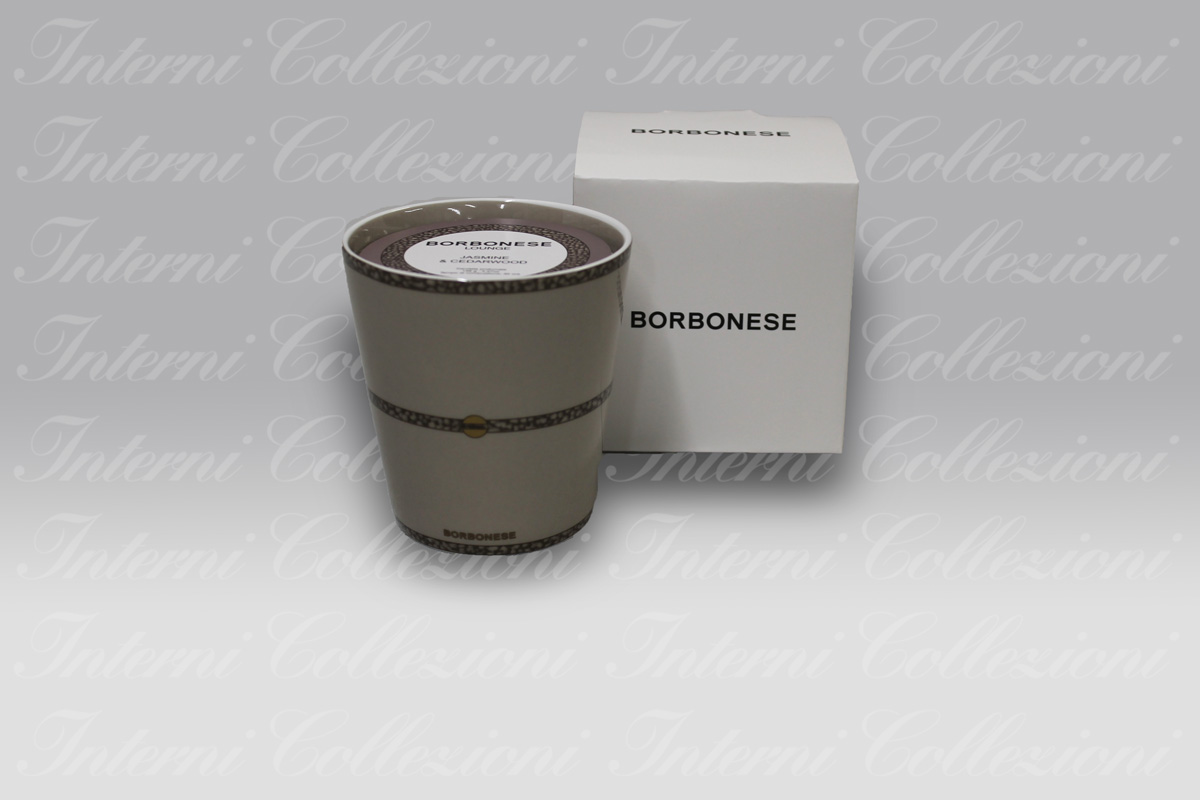 Candela di cera di soia nel porta-candela in ceramica tinta unita con finiture Borbonese.