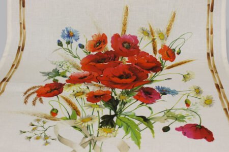 La stampa su fondo chiaro fa risaltare il fantastico mazzo di fiori.