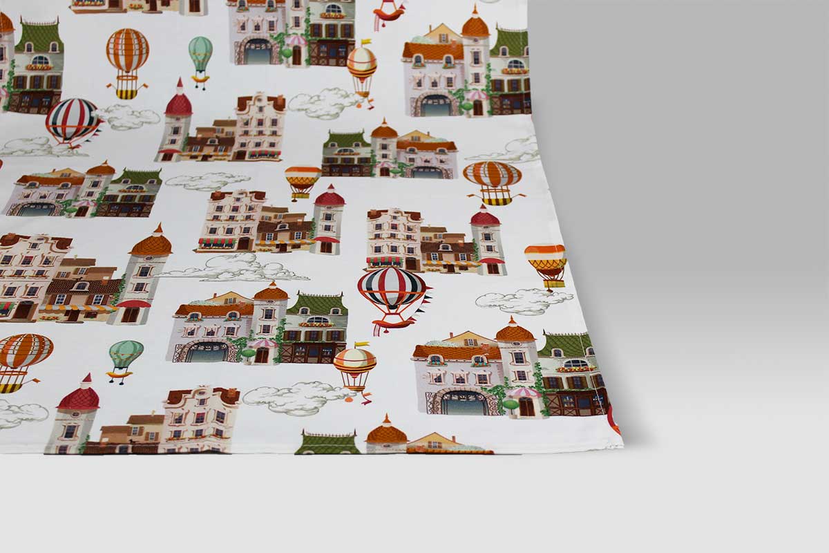 Disegno casette e mongolfiere multicolore per donare freschezza ed allegria.