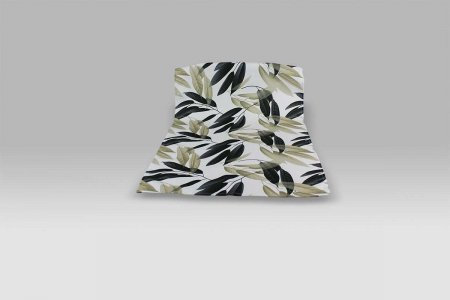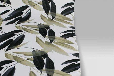 Stampa foglie nei colori neutri e grigio antracite, su un fondo bianco.