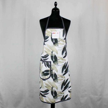 Il grembiule, il guanto e la presina hanno l’applicazione di un bordino grigio antracite.