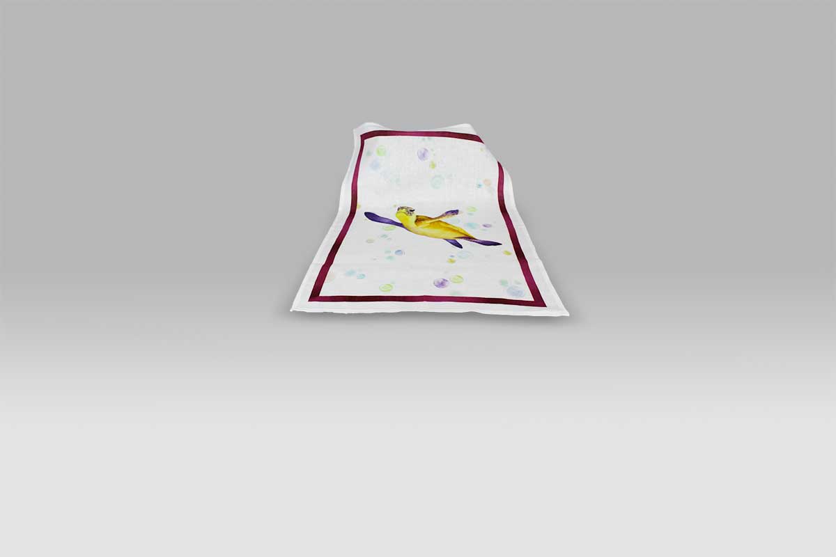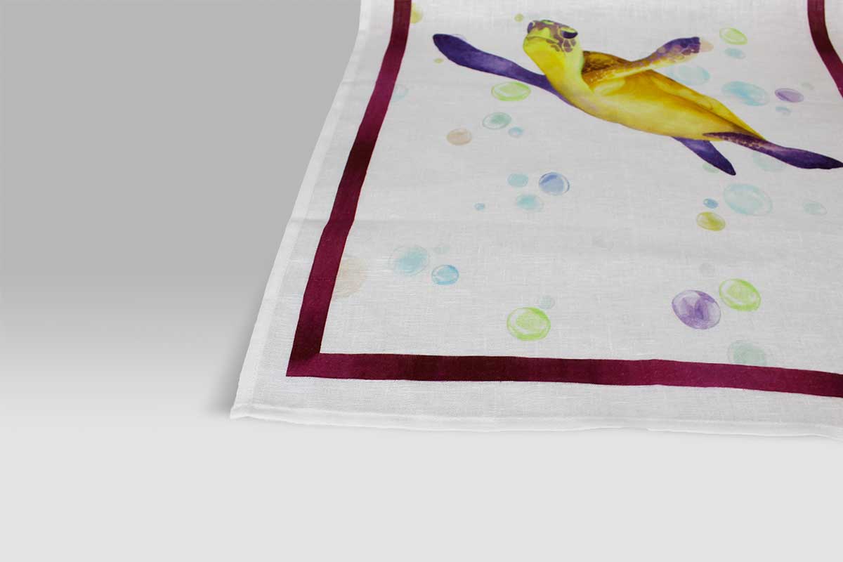 Raffinatissimo canovaccio in puro lino bianco con stampa vivace.