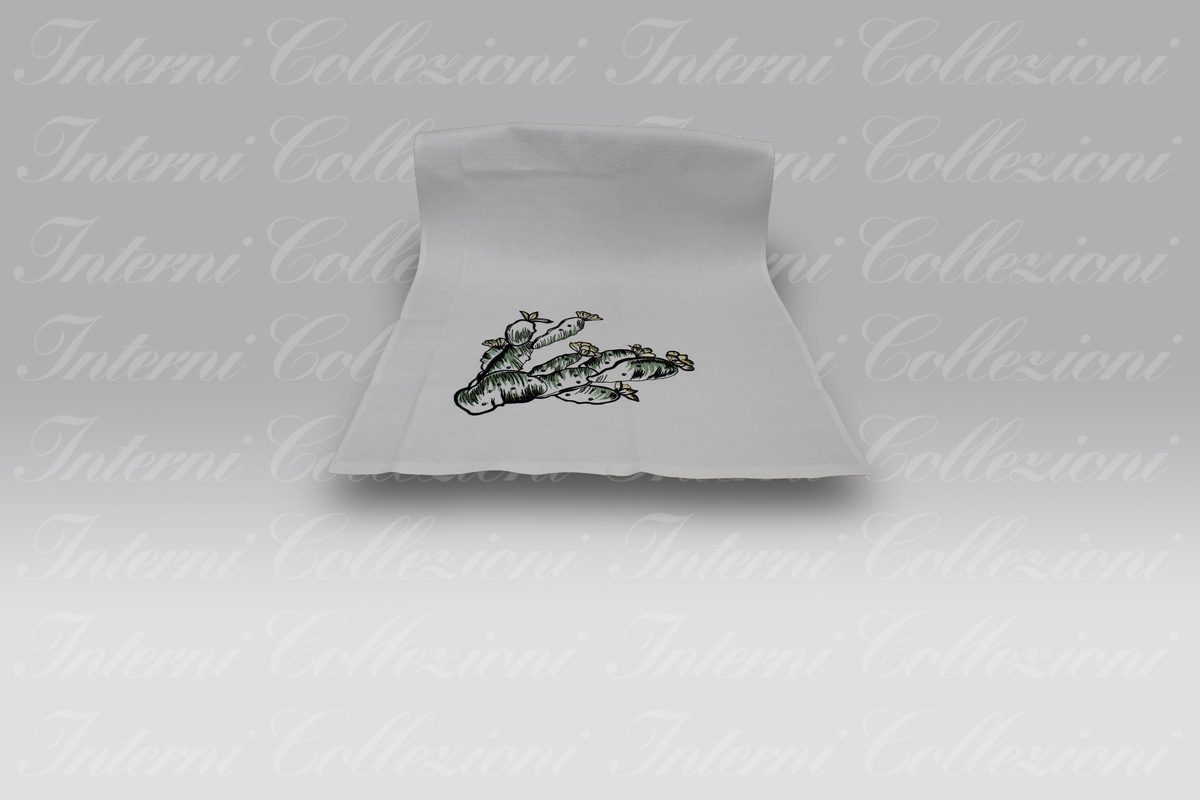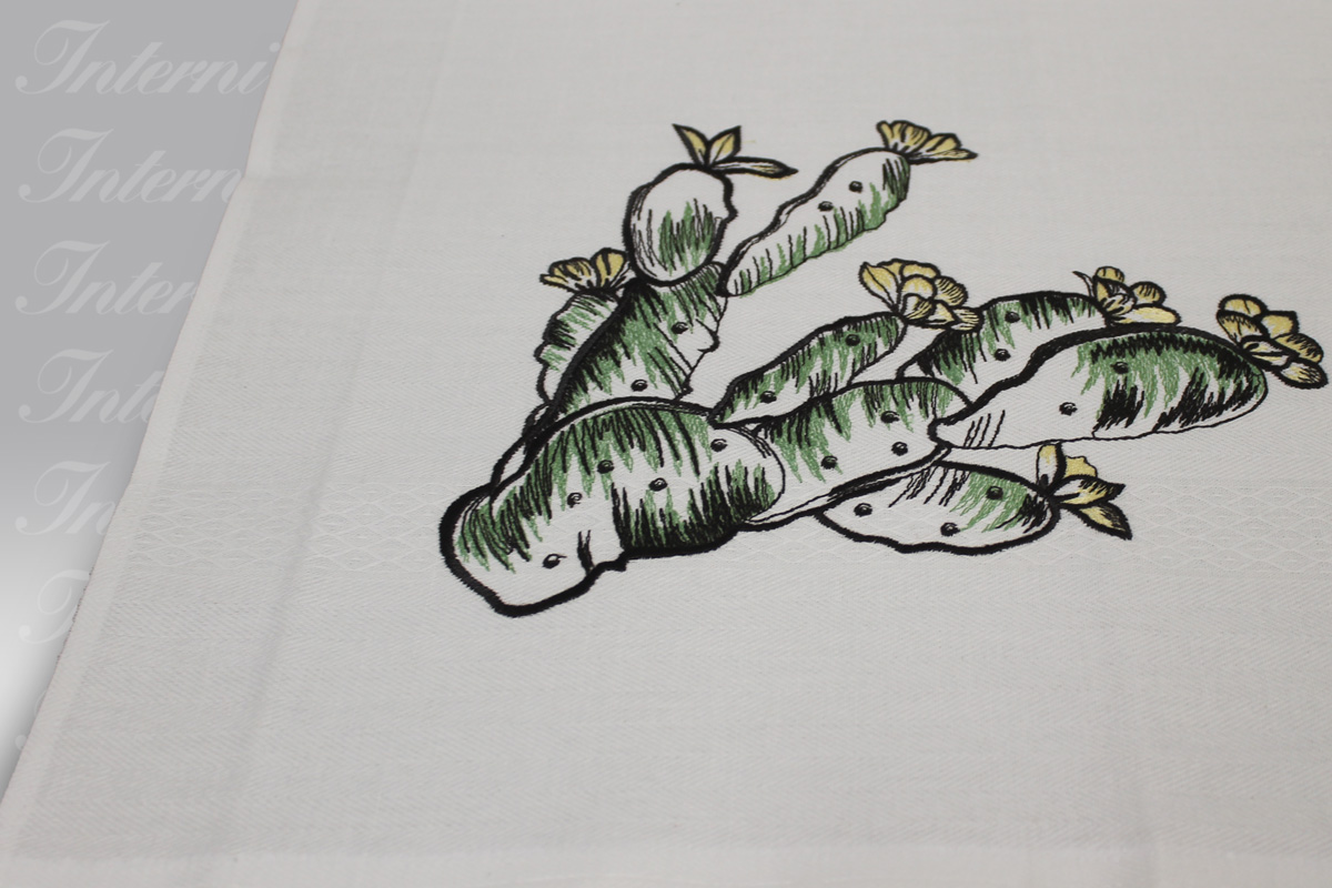 In questi articoli abbiamo un ricamo piante grasse sul lato del pezzo.
