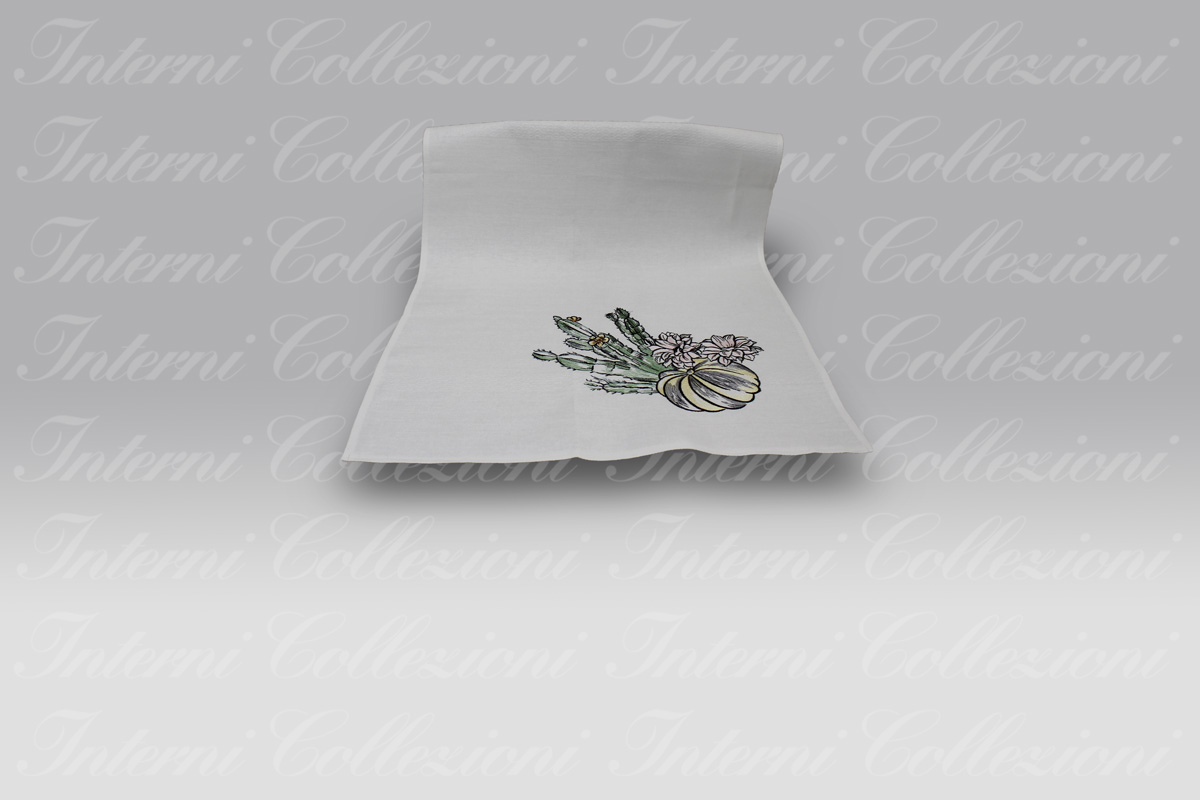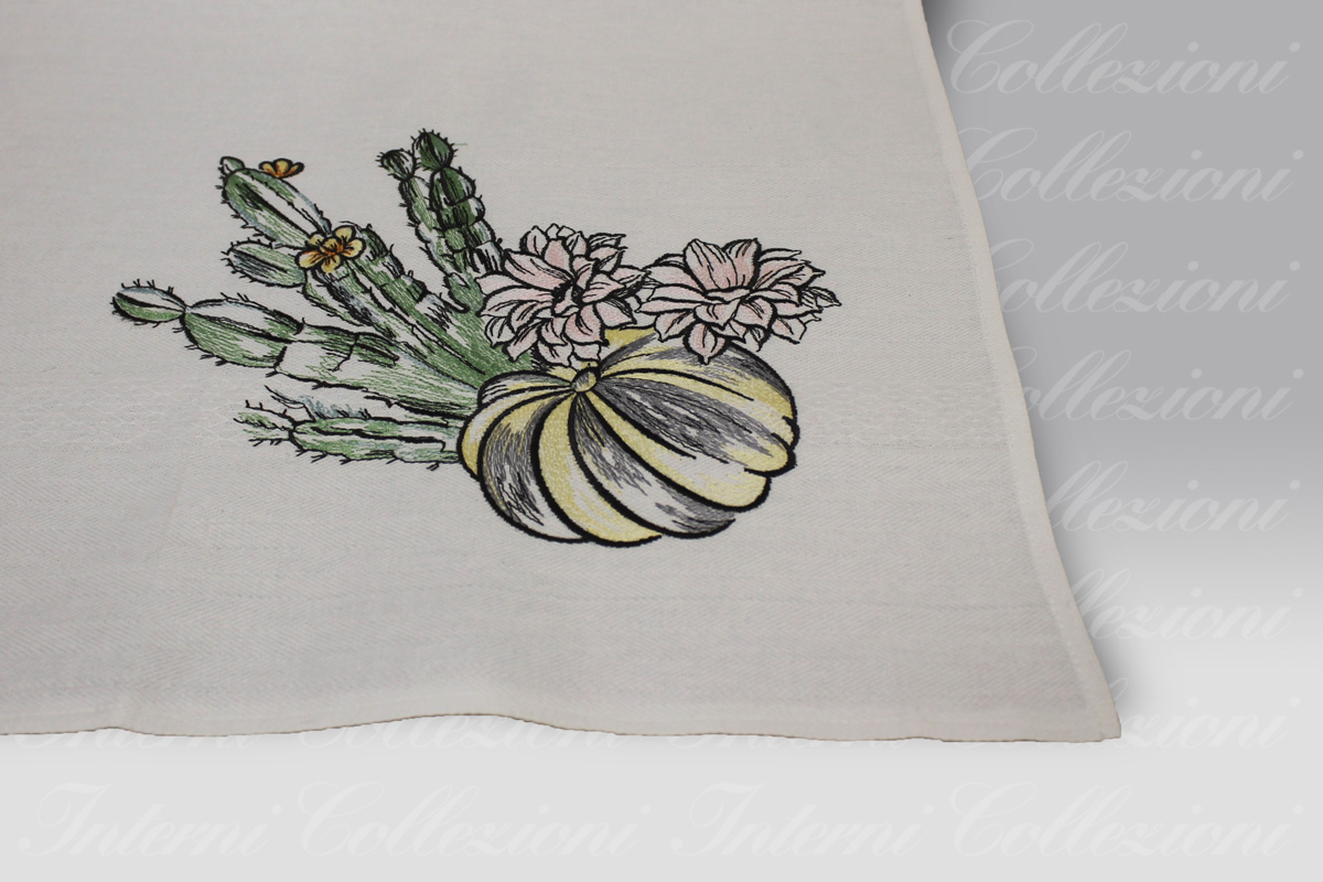 In questi articoli abbiamo un ricamo piante grasse sul lato del pezzo.