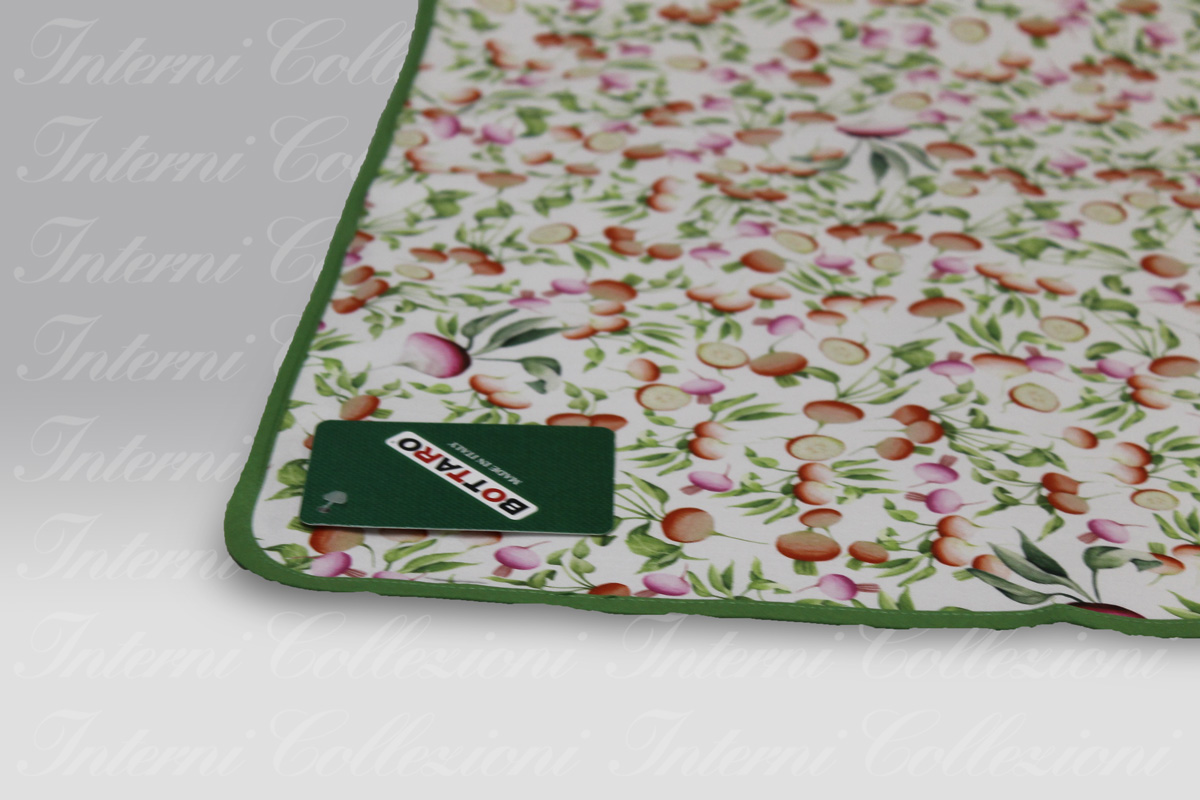 L’azienda Bottaro rifinisce i suoi articoli con un bordino in tinta unita sui 4 lati (finitura con occhiello per appendere lo strofinaccio).