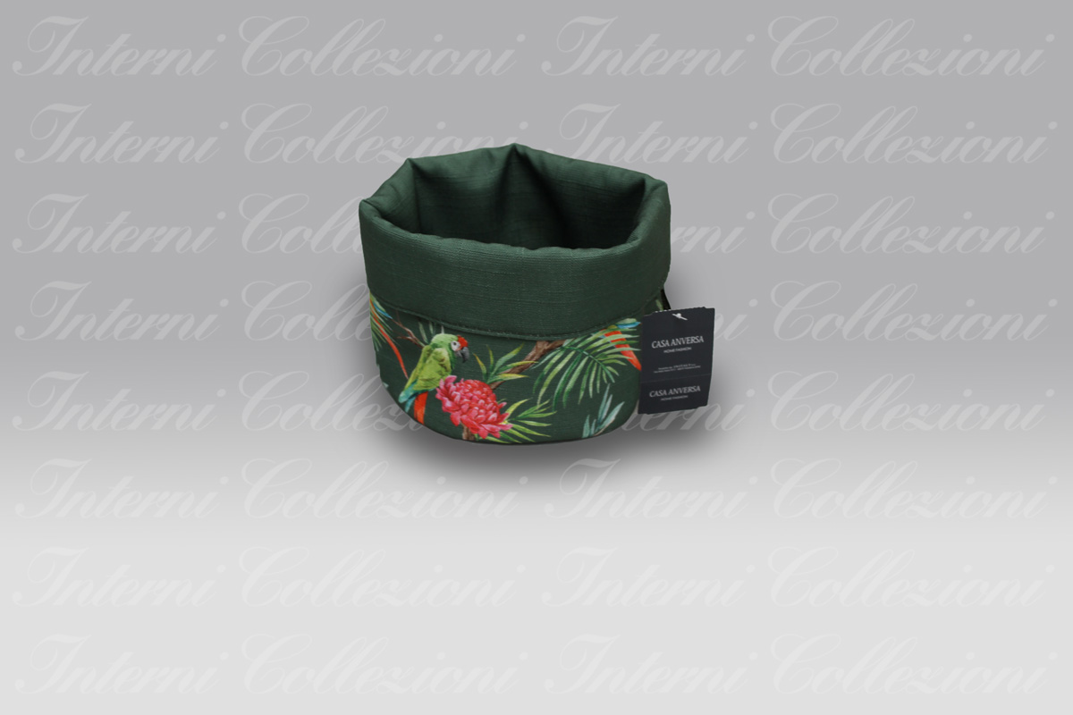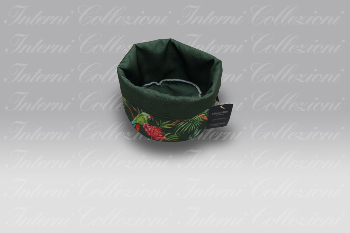 Una stampa variopinta con pappagalli, la fodera interna è in tinta unita in tono.