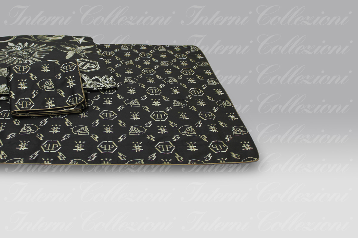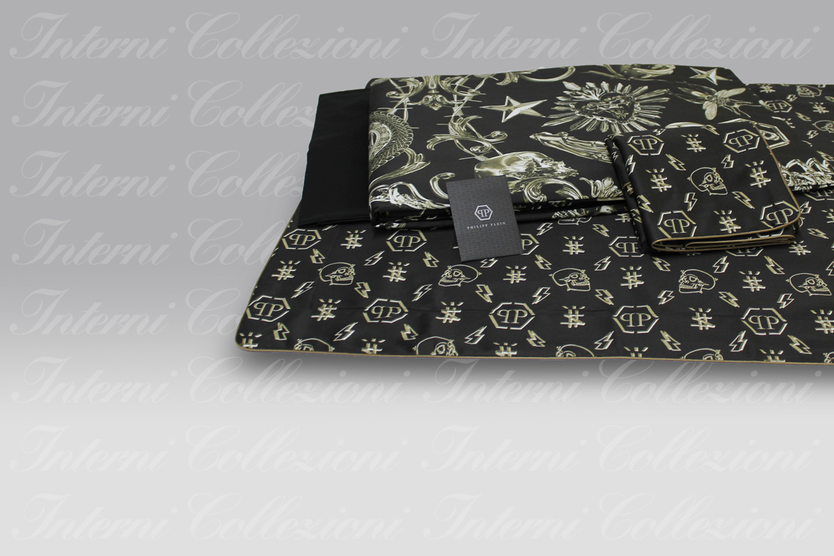 I famosissimi teschi di Philipp Plein vengono stampati su una base nera.