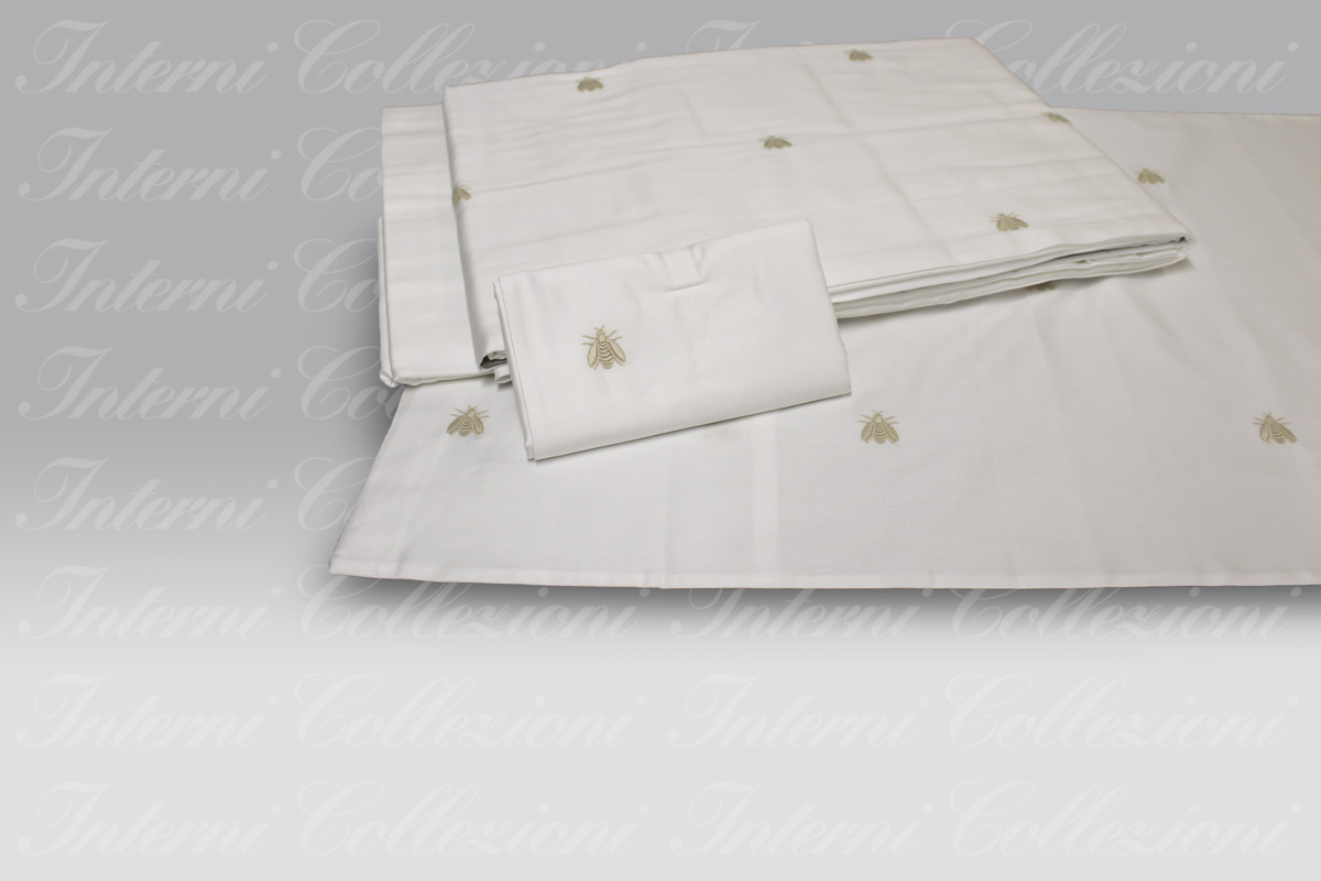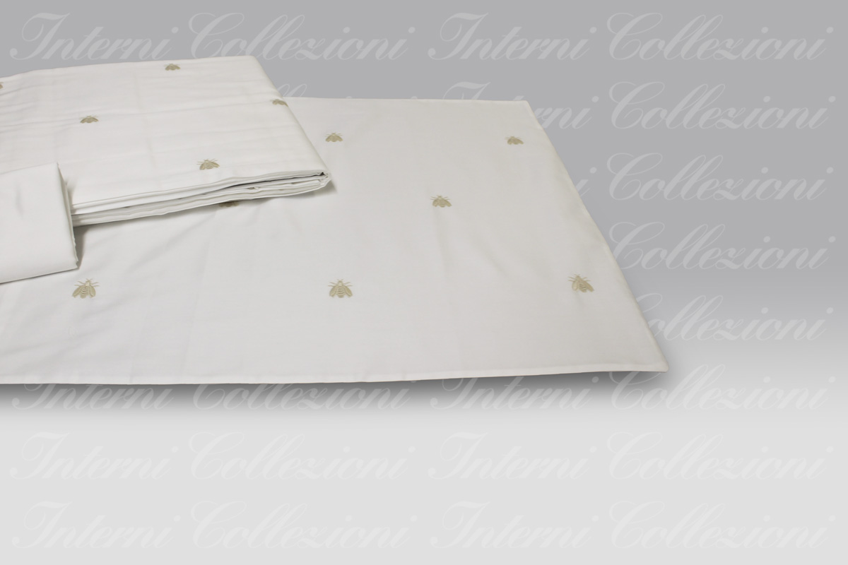 Le fantastiche Api vengono ricamate sulle federe e sulla reverse del lenzuolo sopra.