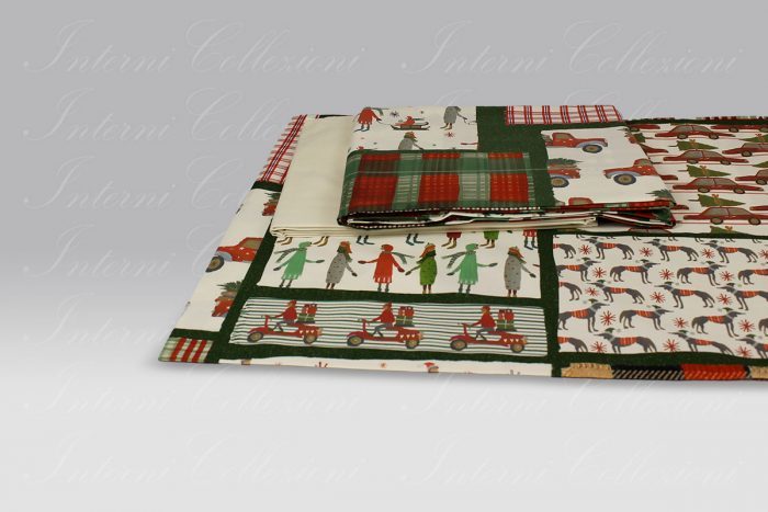 Il completo lenzuola copriletto (ossia con balza a giorno) è realizzato in puro cotone percalle pettinato.