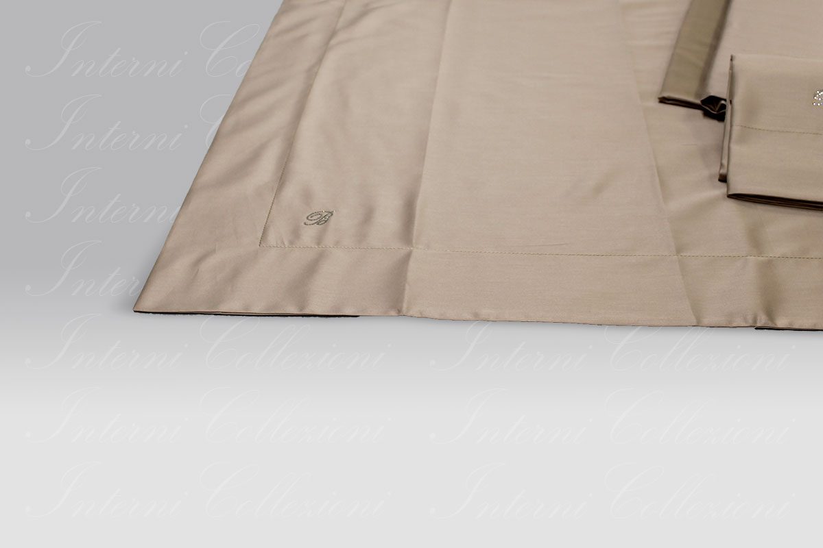 Completo lenzuola matrimoniale in raso di puro cotone.