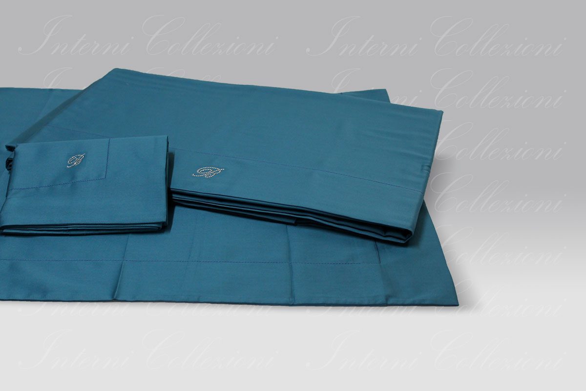 Completo lenzuola matrimoniale in raso di puro cotone.