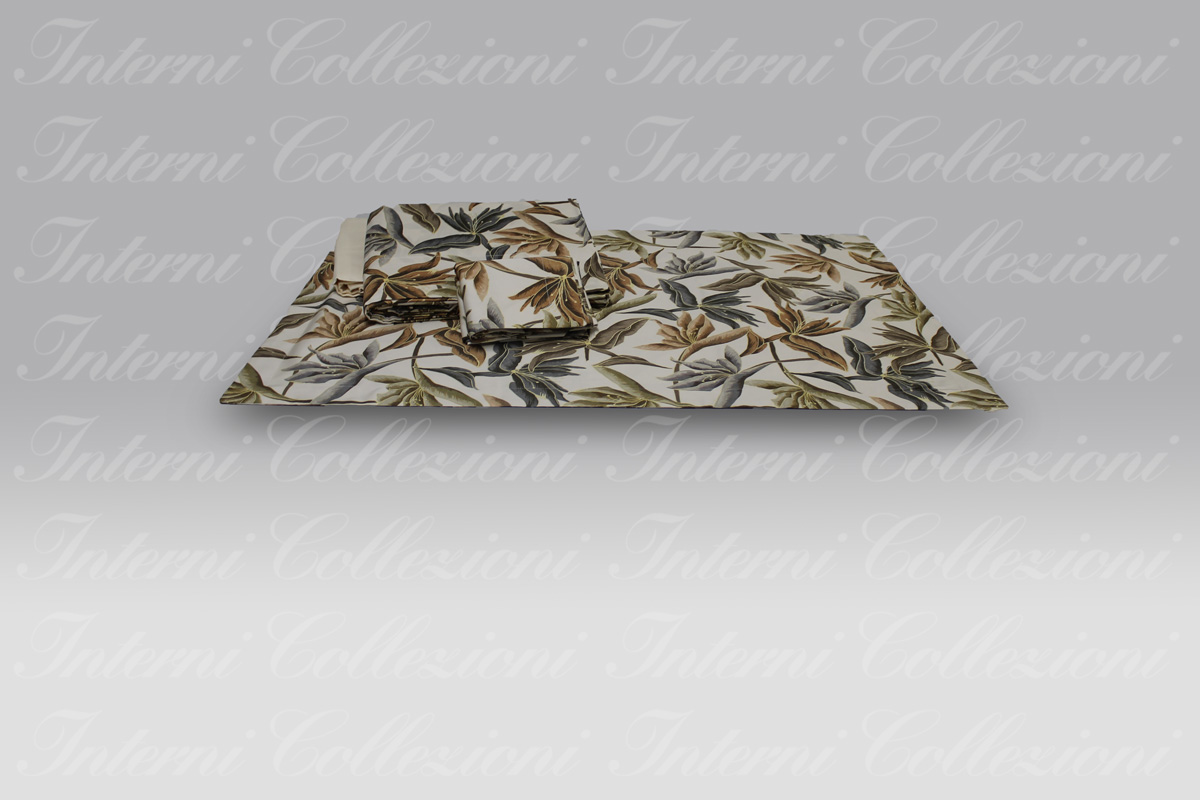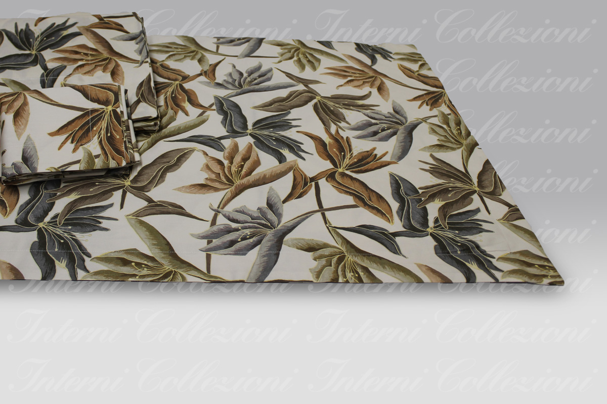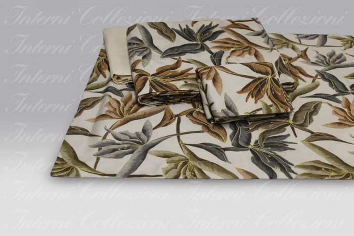 Completo lenzuola-copriletto matrimoniale realizzato in raso di puro cotone.