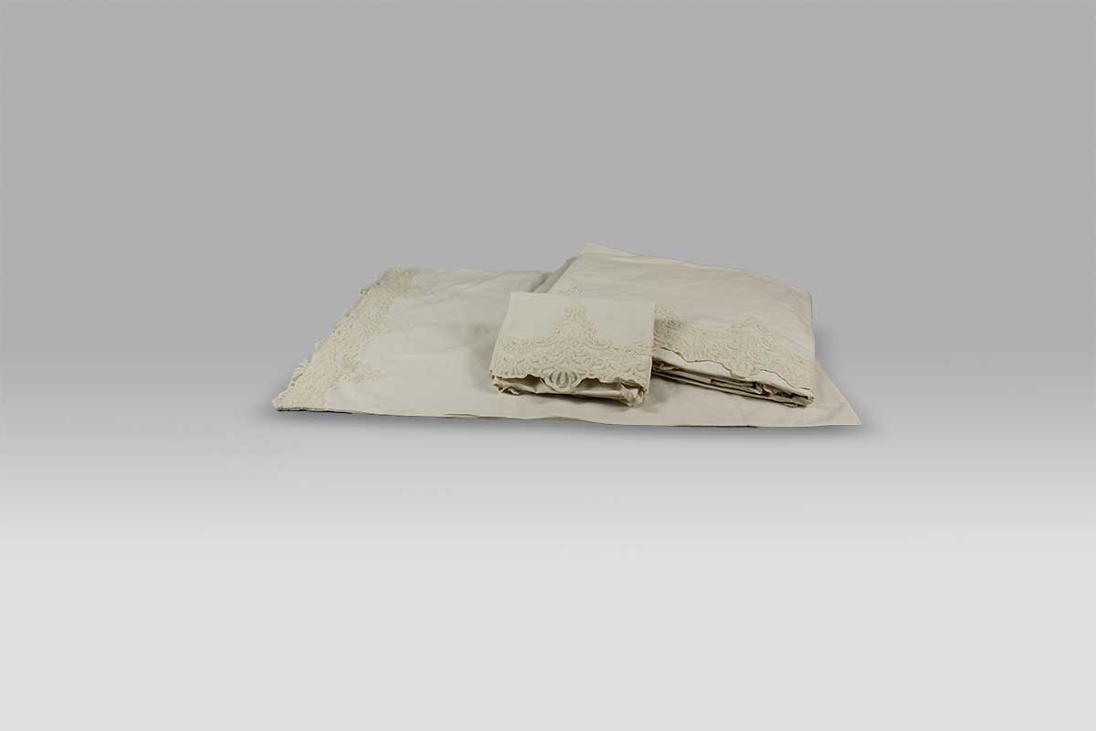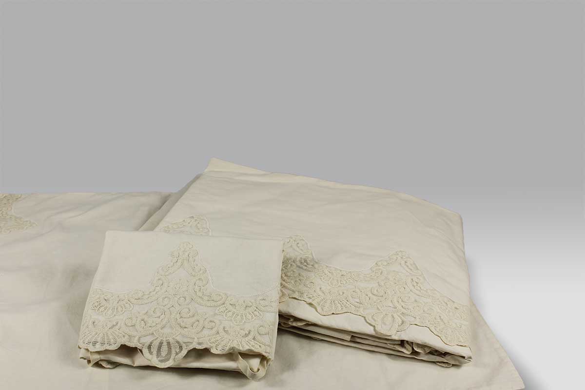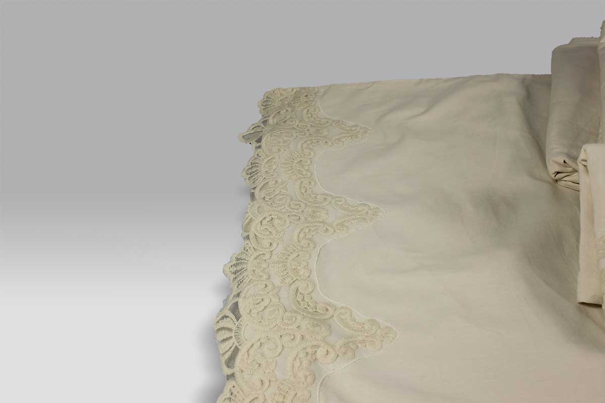 Raffinatissimo completo lenzuolo realizzato in puro cotone trattato.