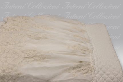 Un romantico effetto vintage, con applicazione di un elegantissimo pizzo intagliato e ricamato.