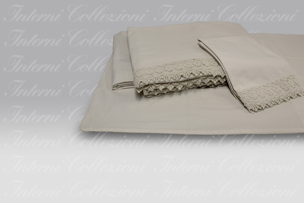 Raffinatissimo completo lenzuolo realizzato in puro cotone trattato.