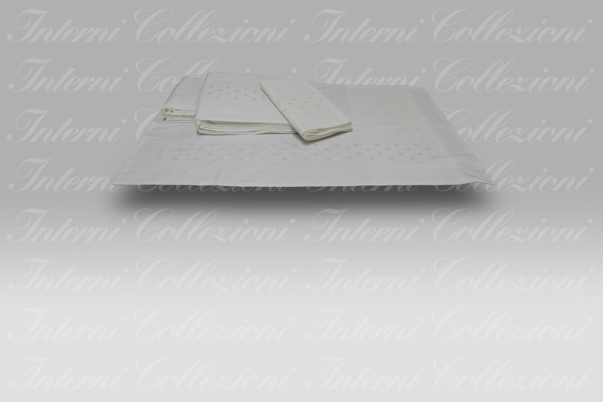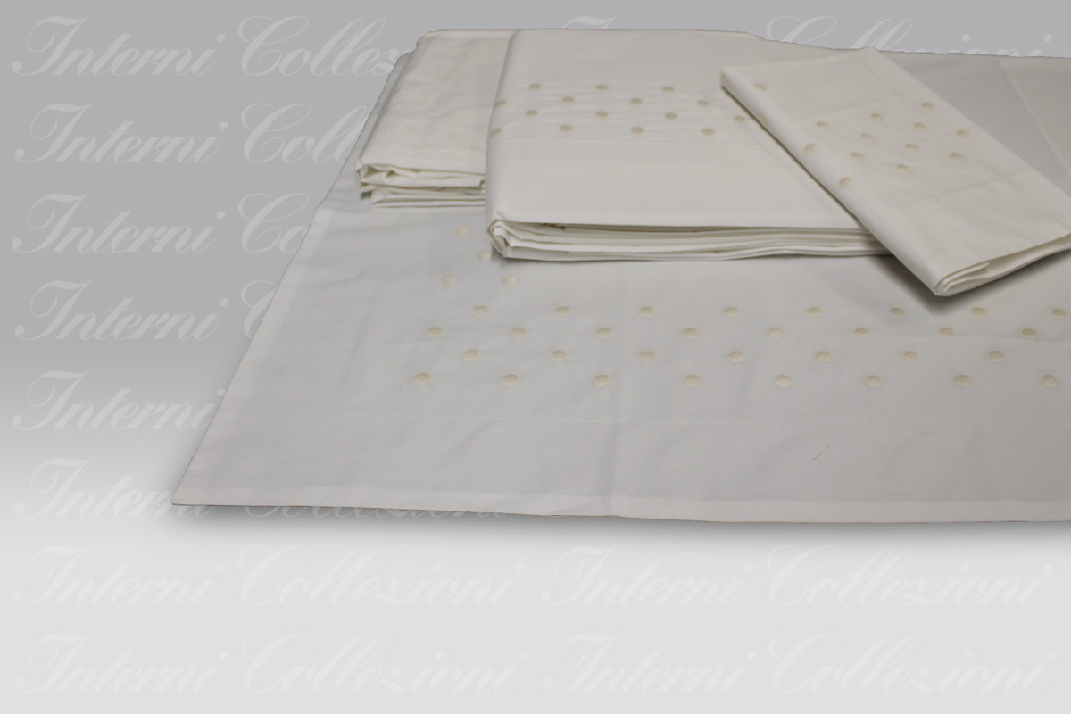 Completo lenzuola matrimoniale realizzato in percalle di puro cotone.