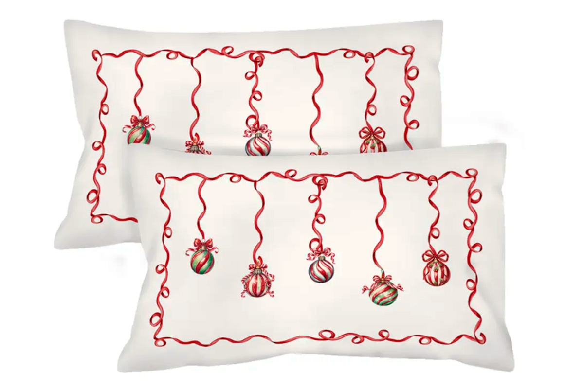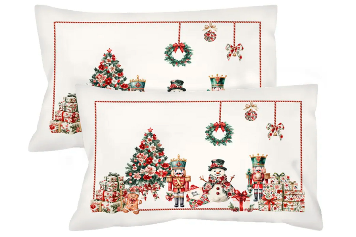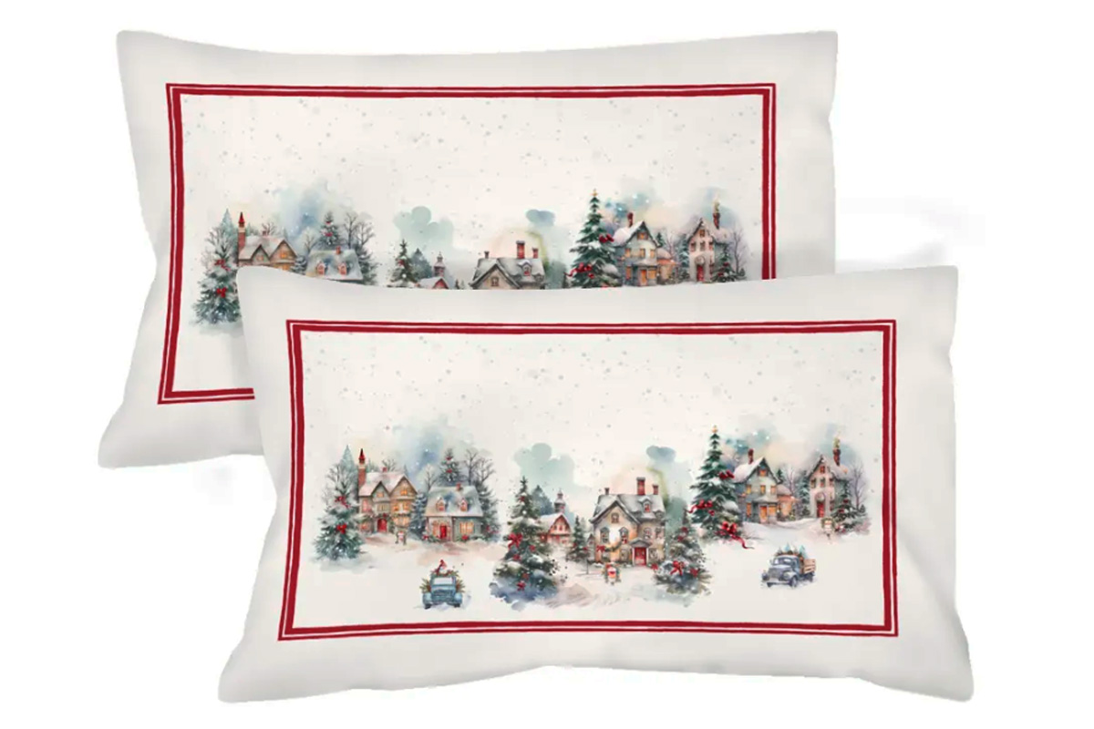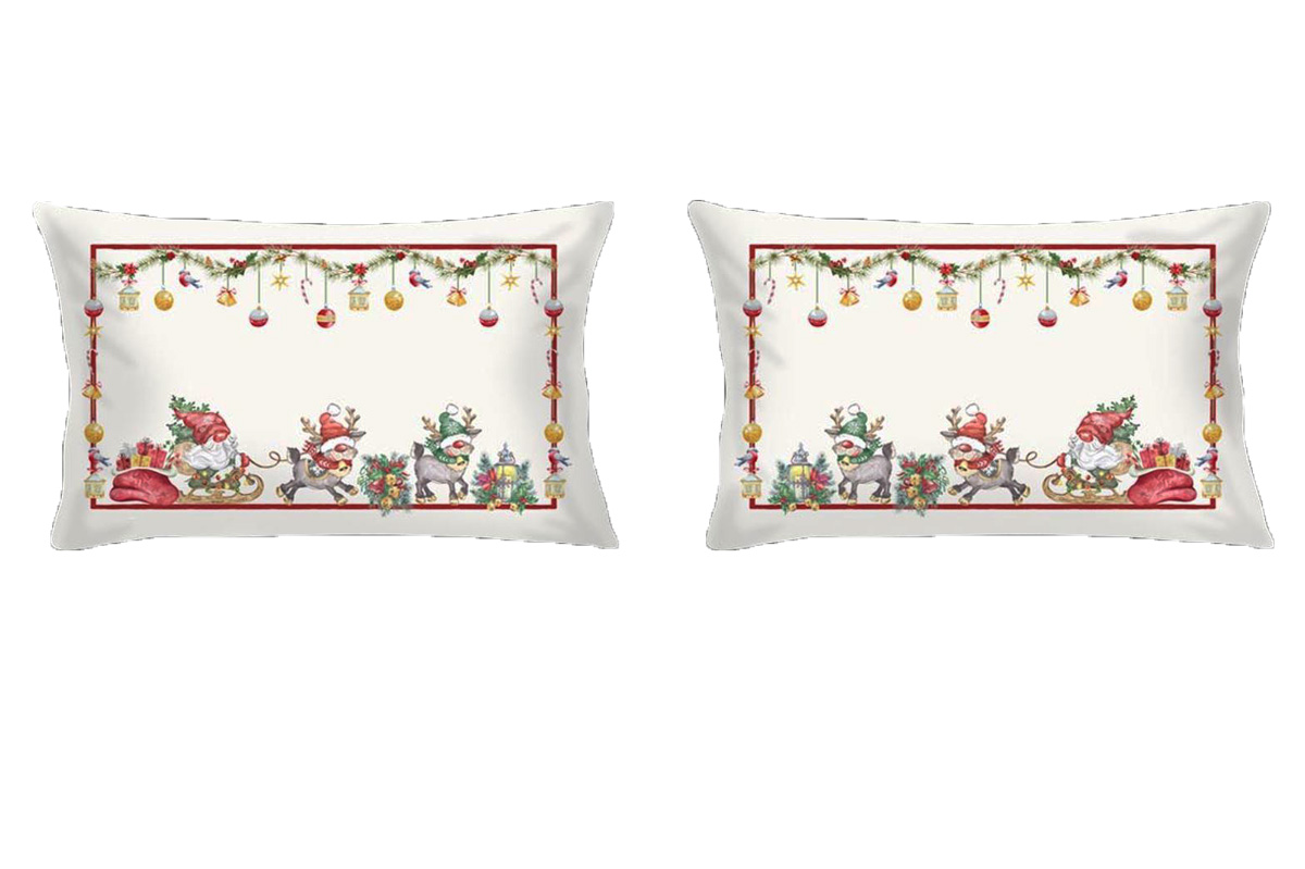La parte superiore delle federe è stampata con motivi natalizi .. scegli quella che più di soddisfa! Invece la parte inferiore è in raso tinta unita.