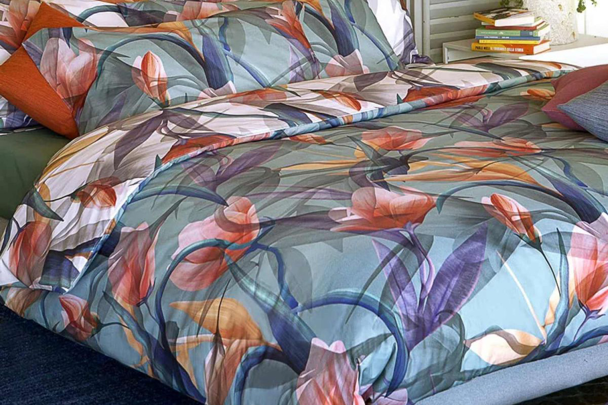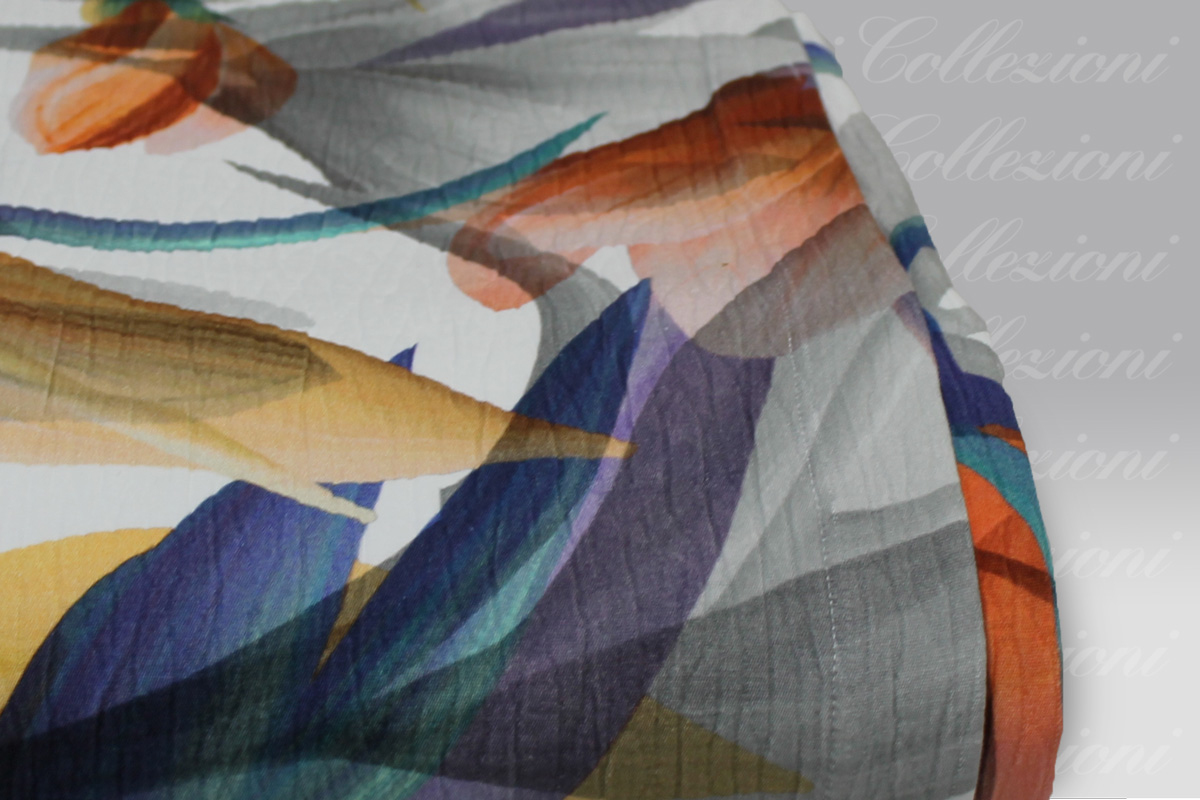 Una stampa floreale stilizzata dai colori mozzafiato.