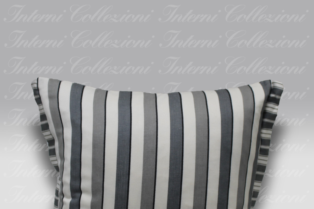 Questo moderno cuscino in cotone presenta un motivo a righe nei toni del grigio antracite