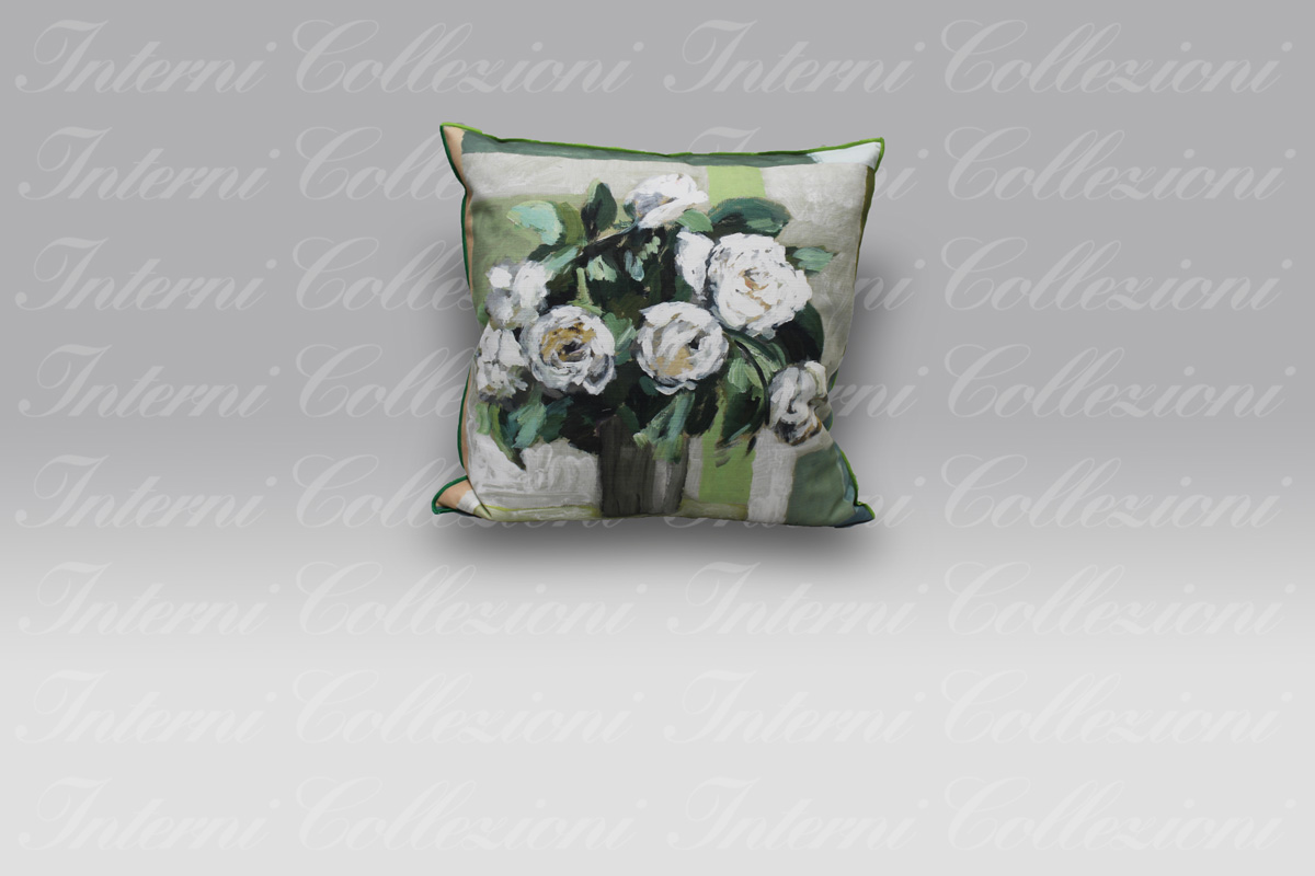 Questo cuscino quadrato è stampato digitalmente su cotone.