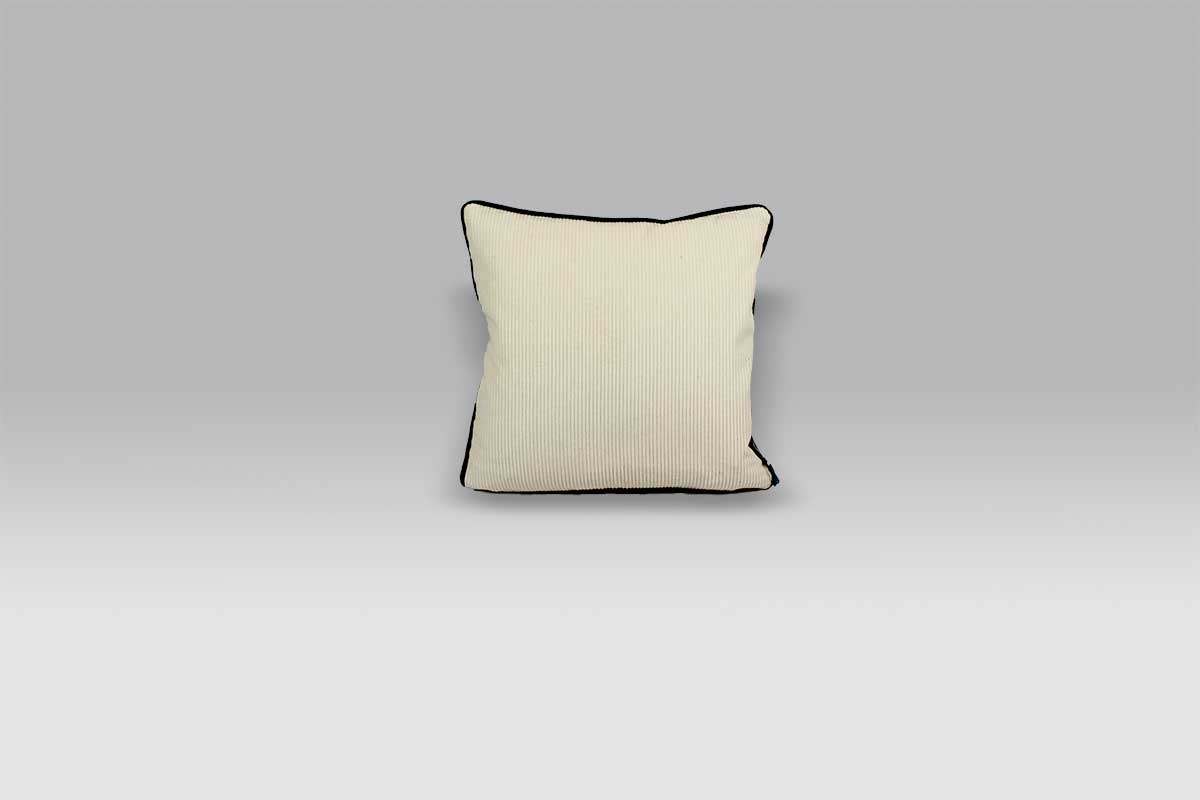Questo cuscino quadrato 43×43 è rifinito con un profilo in lino sui 4 lati.