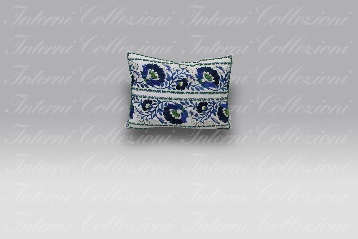 Questo splendido cuscino ricamato è caratterizzato da due fasce floreali in splendidi colori
