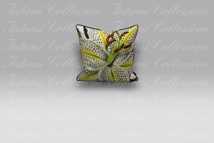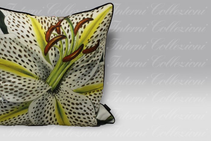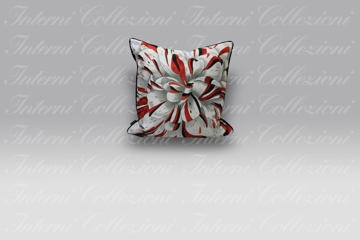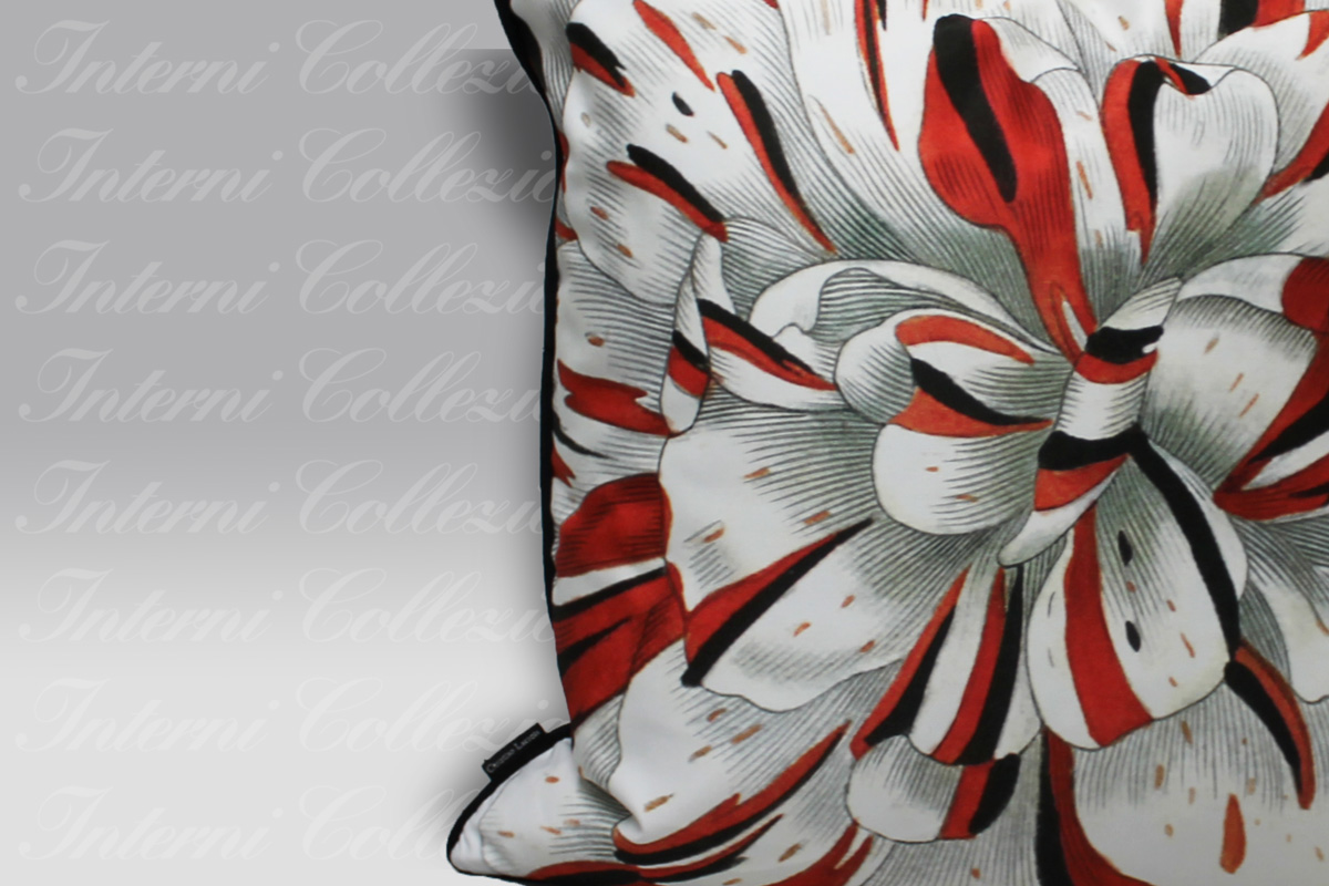 Questo cuscino quadrato di Christian Lacroix rappresenta un’illustrazione ravvicinata di un fiore botanico.