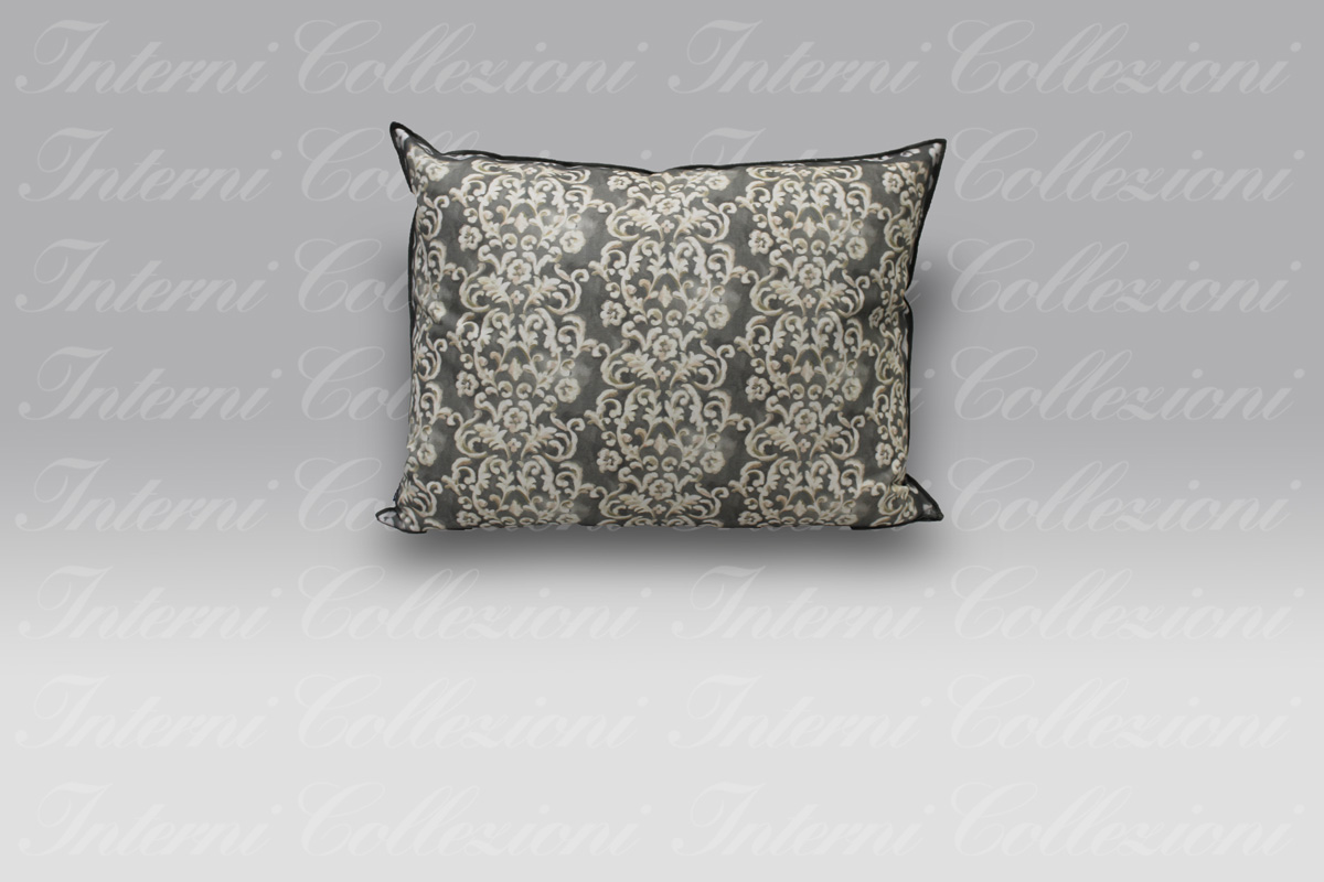 Un damasco contemporaneo in questo cuscino rettangolare dal design accattivante in un color grigio.