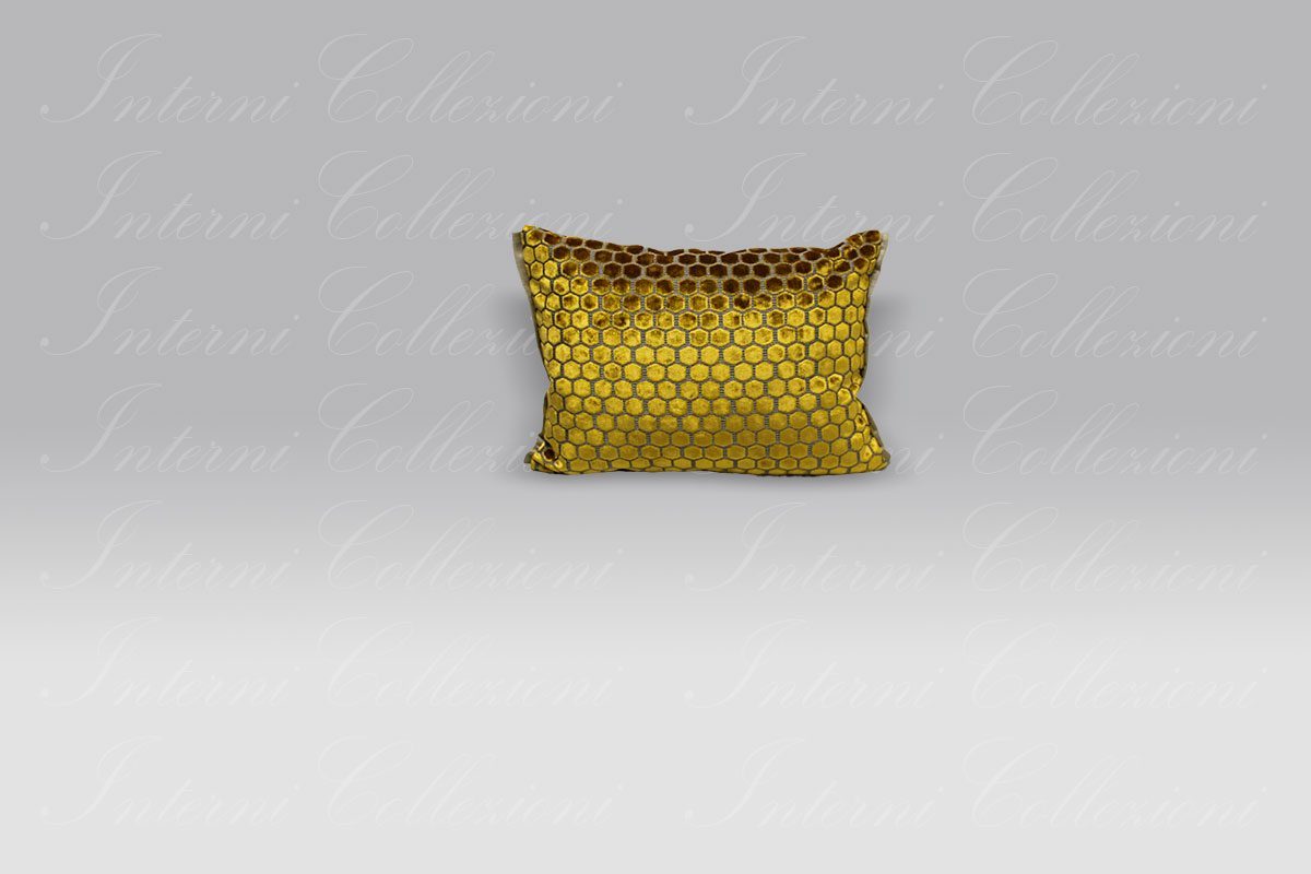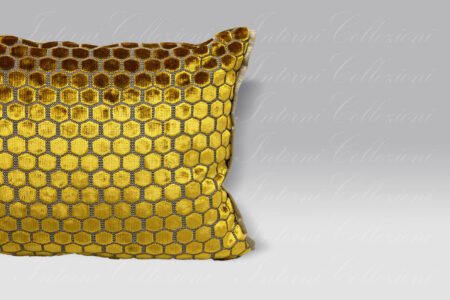 Fantastico cuscinetto in velluto operato con piccoli motivi esagonali.