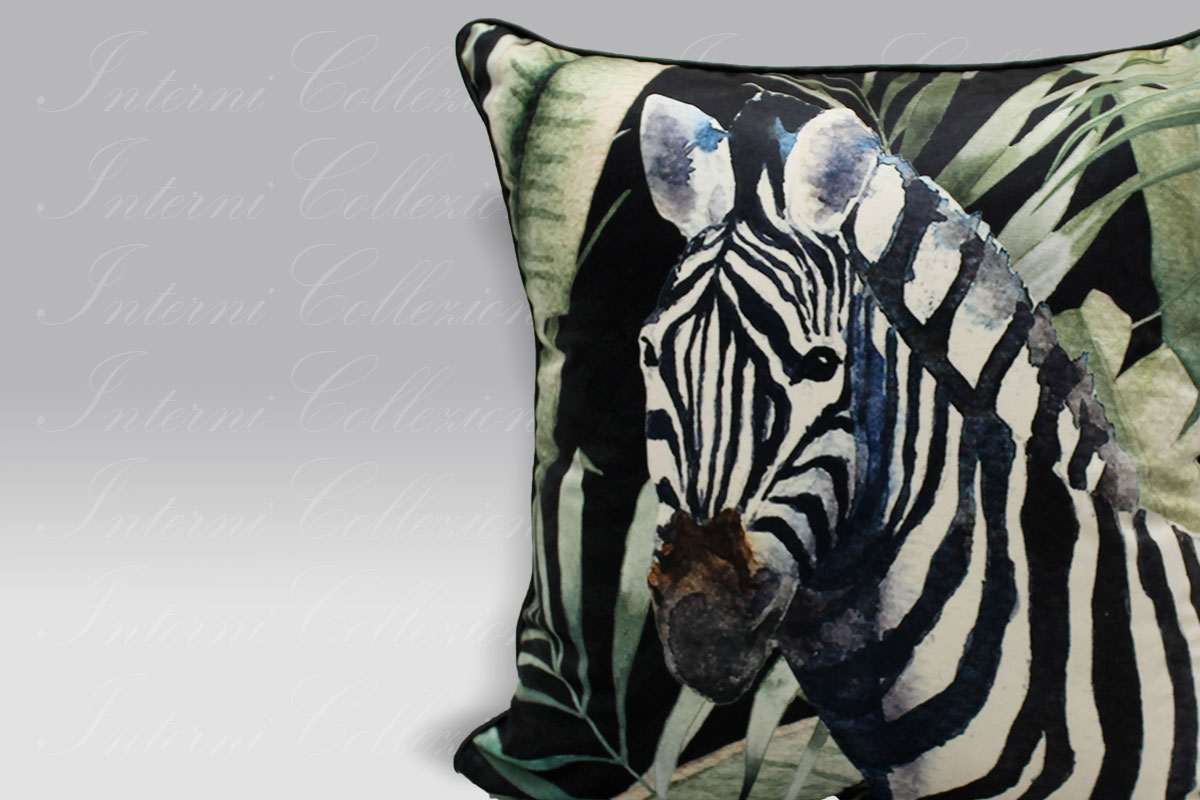 Cuscino Henry velluto blu-giallo-verde Foresti Home Collection Group