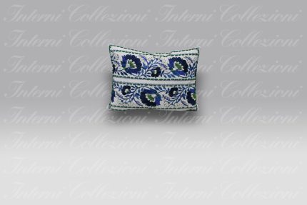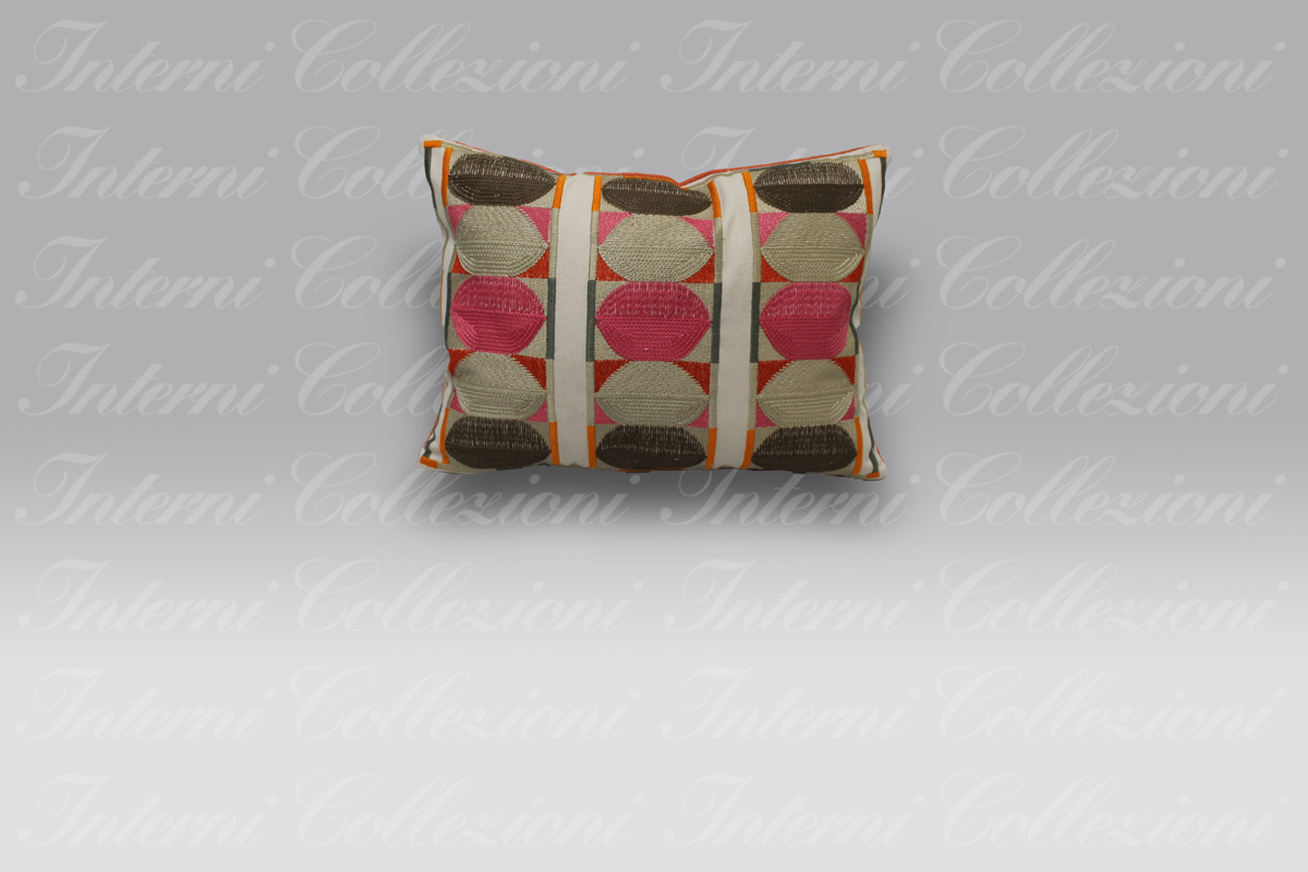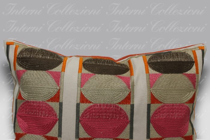 Questo splendido cuscino è caratterizzato da tre fasce con un motivo geometrico a piccola scala.