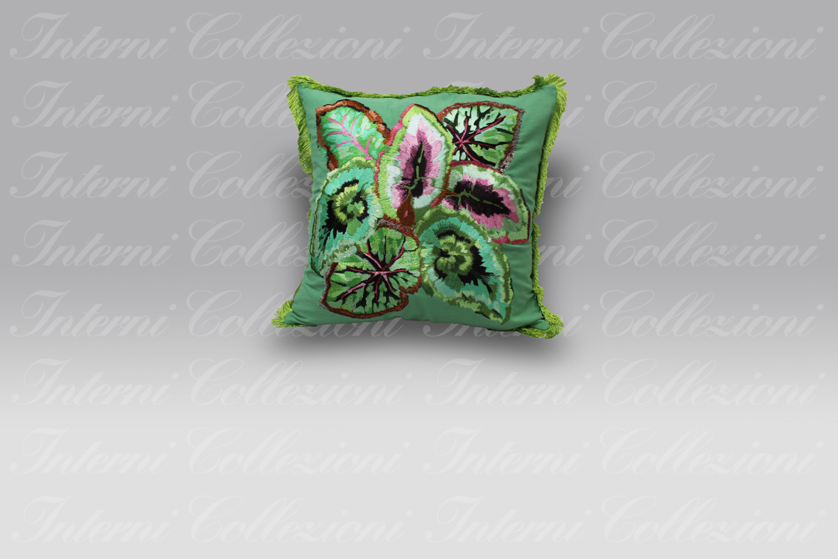 Le foglie grandi decorative rimandano alla meraviglia di questo elegante cuscino.