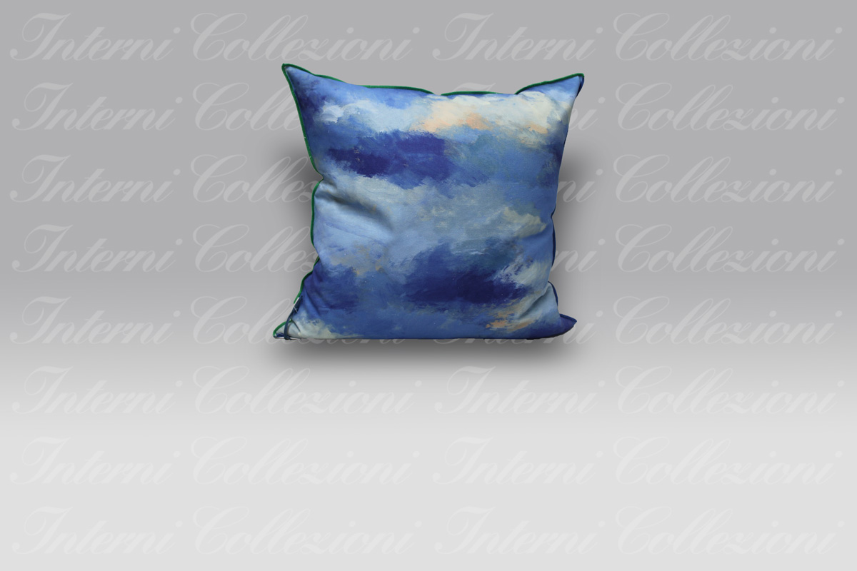 Cuscino Henry velluto blu-giallo-verde Foresti Home Collection Group