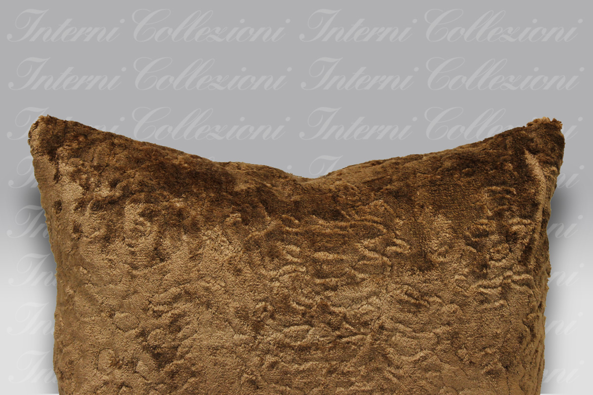 Un cuscino in velluto a pelo lungo, morbidissimo e lussuoso, con texture profonda.