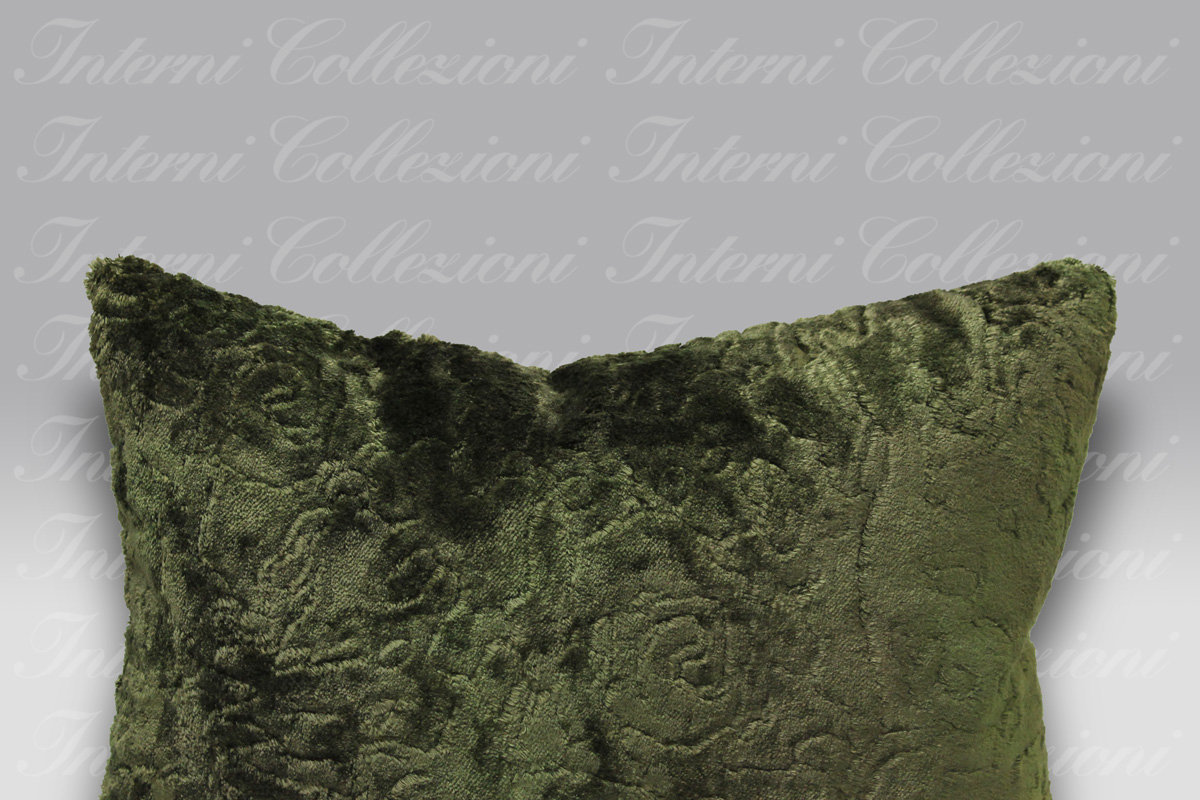Un cuscino in velluto a pelo lungo, morbidissimo e lussuoso, con texture profonda.