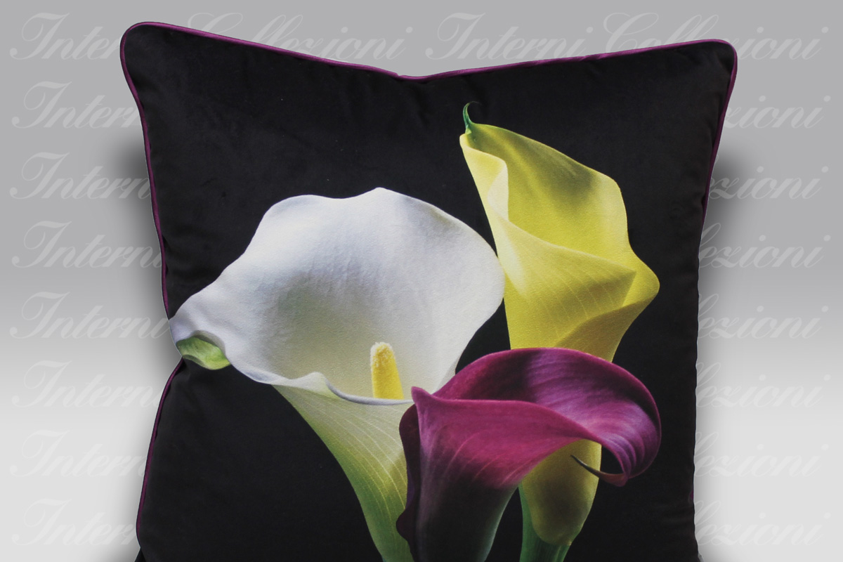 Il retro invece è in tinta unita in tono. Viene rifinito sui 4 lati da un bordino in piping in contrasto.