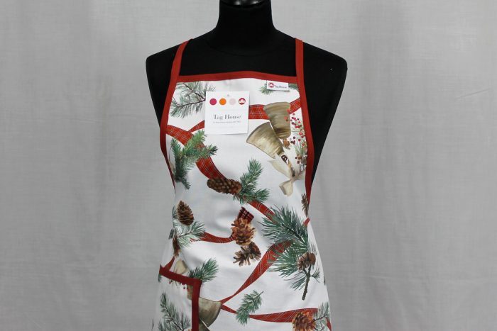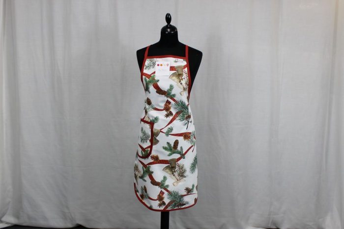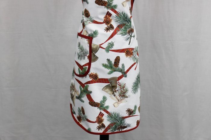 Una fantastica stampa natalizia che ritrae fiocchi, pigne e vischio.
