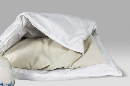 Guanciale con nucleo in cirmolo e lana, avvolto da un guscio in soffice piumino.