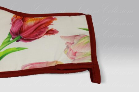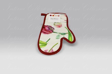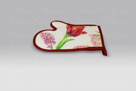 Fantastico guanto da forno imbottito, rivestito con cotone panama stampato.
