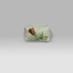 Il tutto è circondato da foglie di geranio verde su uno sfondo grigio.