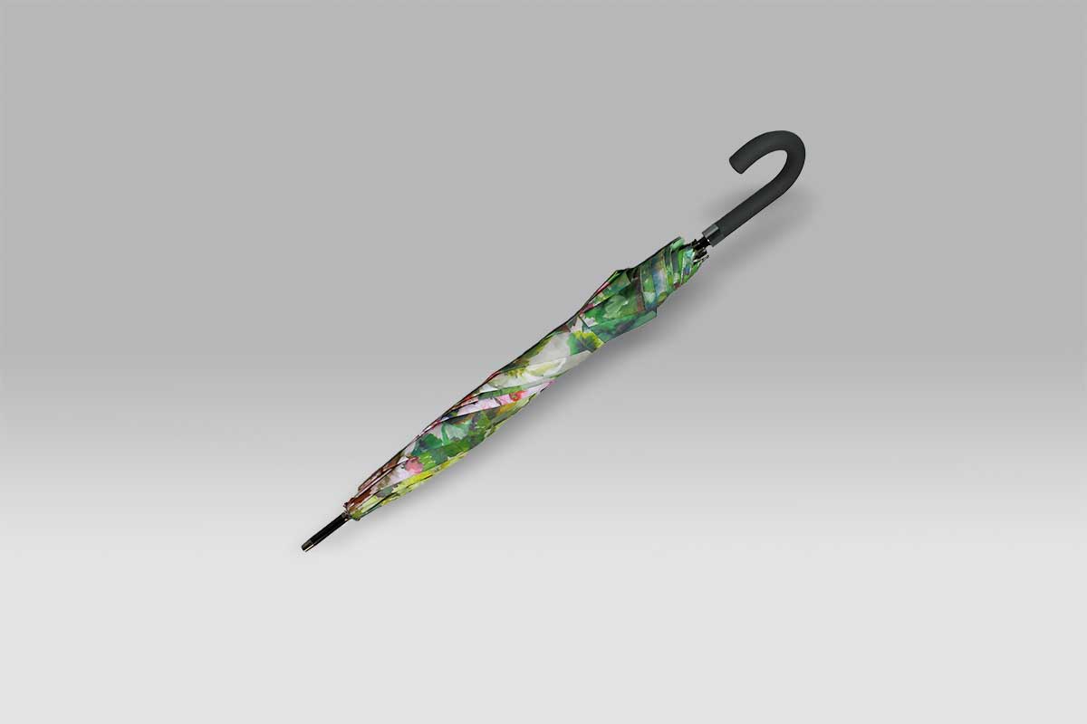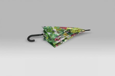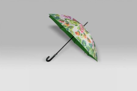 Questo ombrello ha due strati: uno floreale e all’interno un verde.
