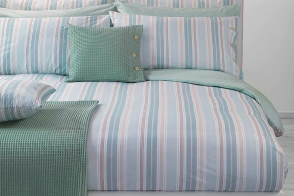 Parure copripiumino realizzato in percalle di puro cotone pettinato.