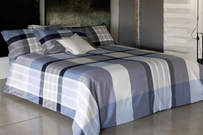 Fantastica parure copripiumino scozzese nei toni dell’azzurro.